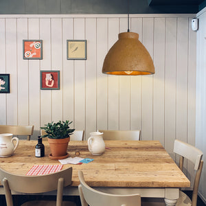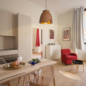 Discover the raw beauty of the 'Morphe Pendant Light', a celebration of wabi-sabi, the art of finding beauty in imperfection. Crafted with a textured, earth-toned finish, this pendant light boasts a natural, organic form with an intentionally imperfect silhouette. Its warm, ambient glow is perfect for creating a cozy and inviting atmosphere in your home. Embrace a touch of rustic charm and character with this vintage-inspired pendant light, a piece that's as much a work of art as it is a source of illumination.