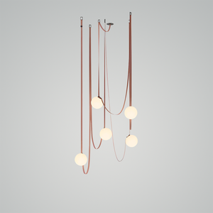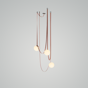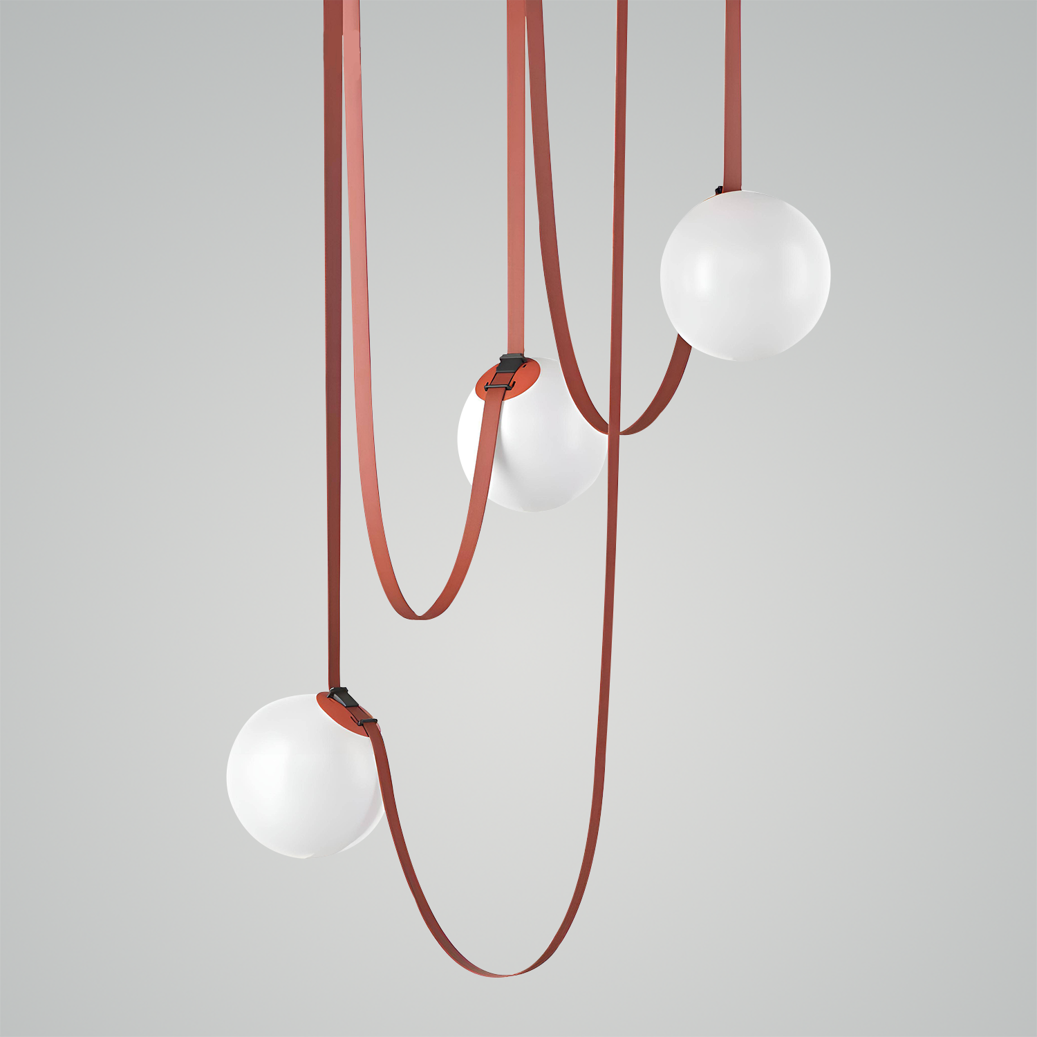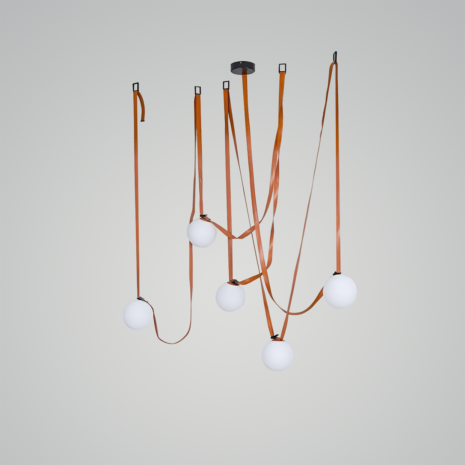 Introducing the Multiple Belt Art Pendant Light - a playful yet elegant lighting solution that adds a whimsical touch to any space. Suspended on graceful, leather-like belts, each milky white orb seems to dance in mid-air, providing a warm and inviting glow. The unique design allows the lights to be adjusted and arranged to suit your individual style and lighting needs. Perfect for the avant-garde decorator looking to inject a dash of fun into their decor, this pendant light is as versatile as it is stylish. With its combination of organic shapes and industrial materials, the Orbiting Orbs Belted Pendant is a striking addition to both contemporary and traditional interiors.