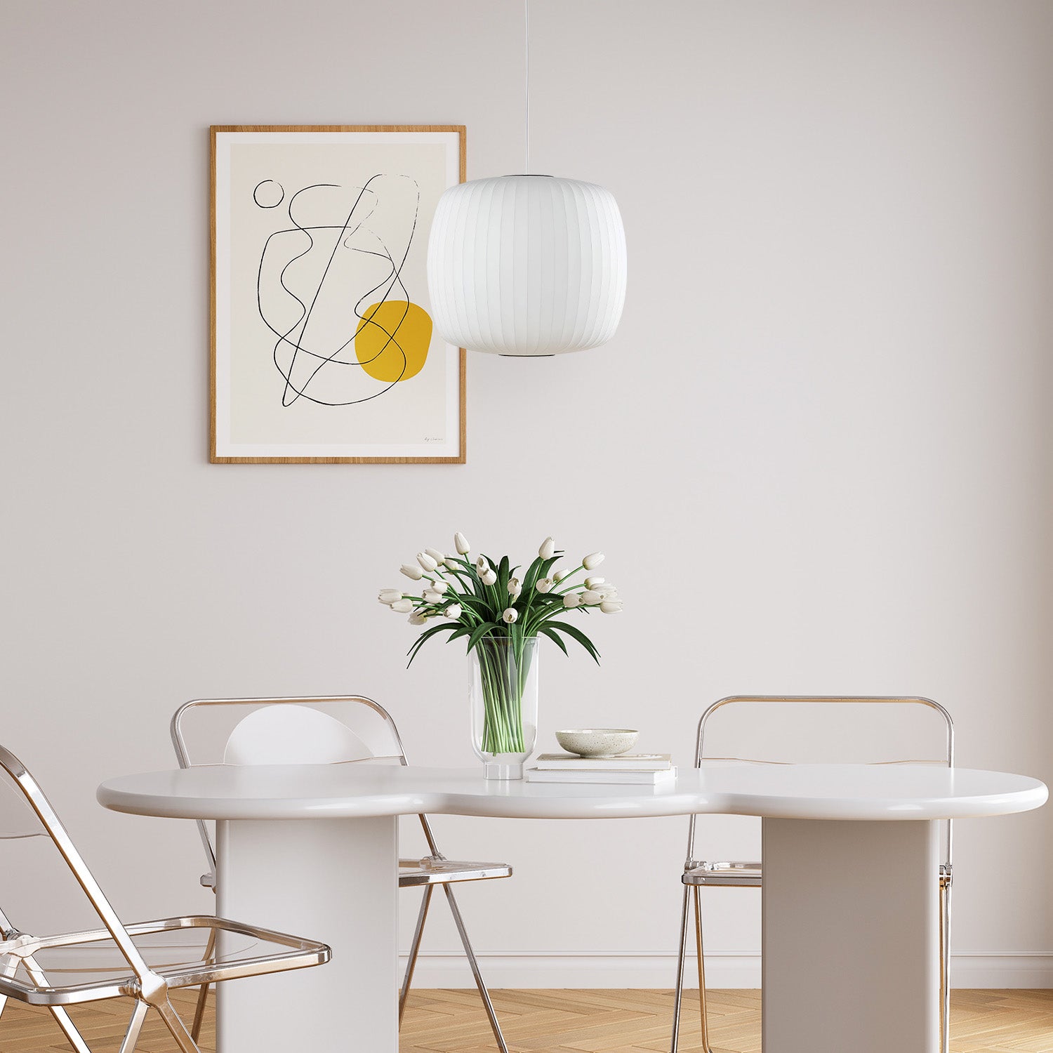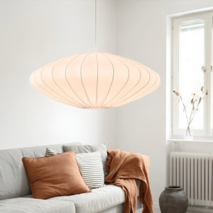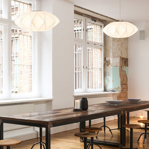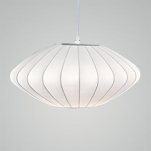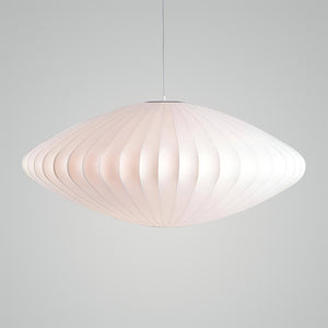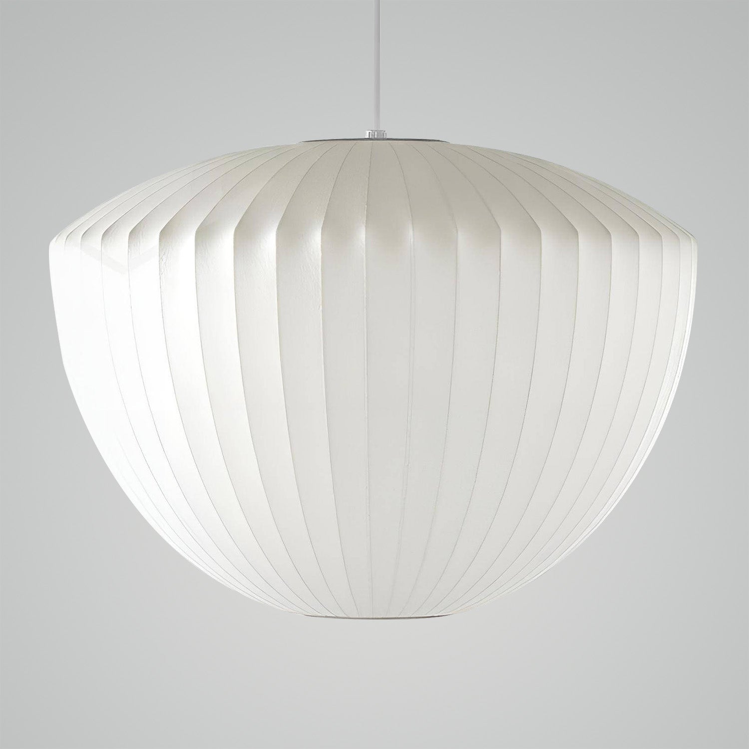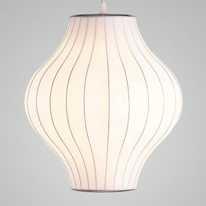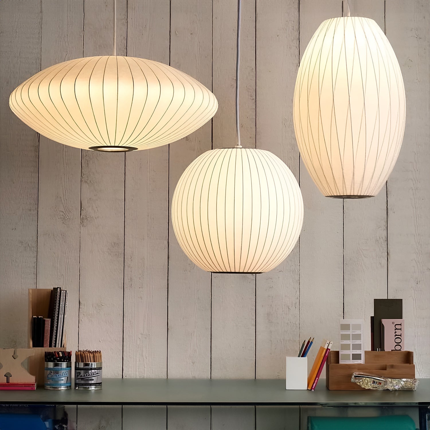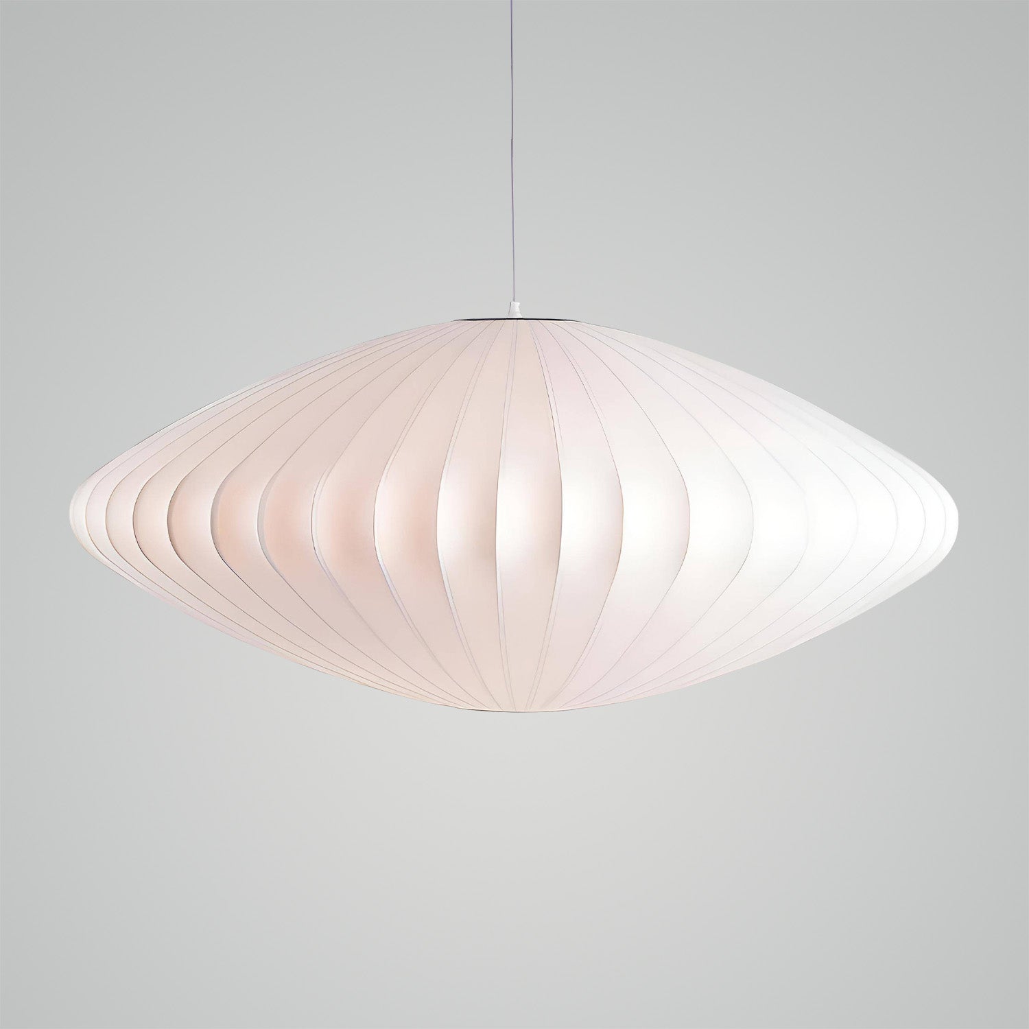 Float away with the Nelson Bubble Pendant Lamp, an exquisite addition to any space that seeks a touch of calm and purity. This pendant light draws inspiration from the gentle forms of drifting clouds, crafted from silky fabric that diffuses light into a soft, ambient glow. The elegantly curved lines and simple white color palette create a sense of peace and tranquility, making it a perfect choice for spaces designed for relaxation or contemplation. Illuminate your home with the Serene Nimbus Pendant and let it envelop your space in a cozy, serene light that soothes the soul.
