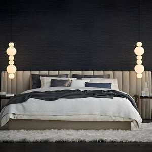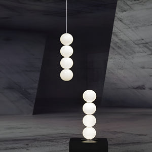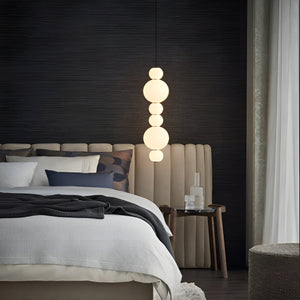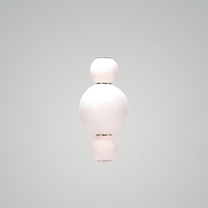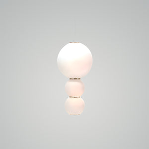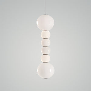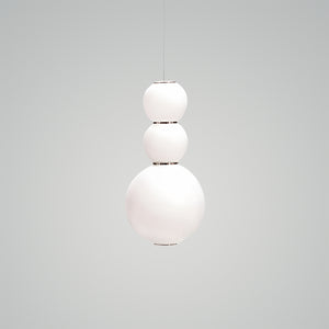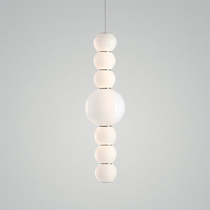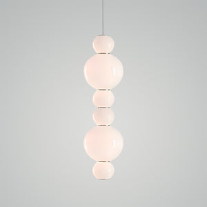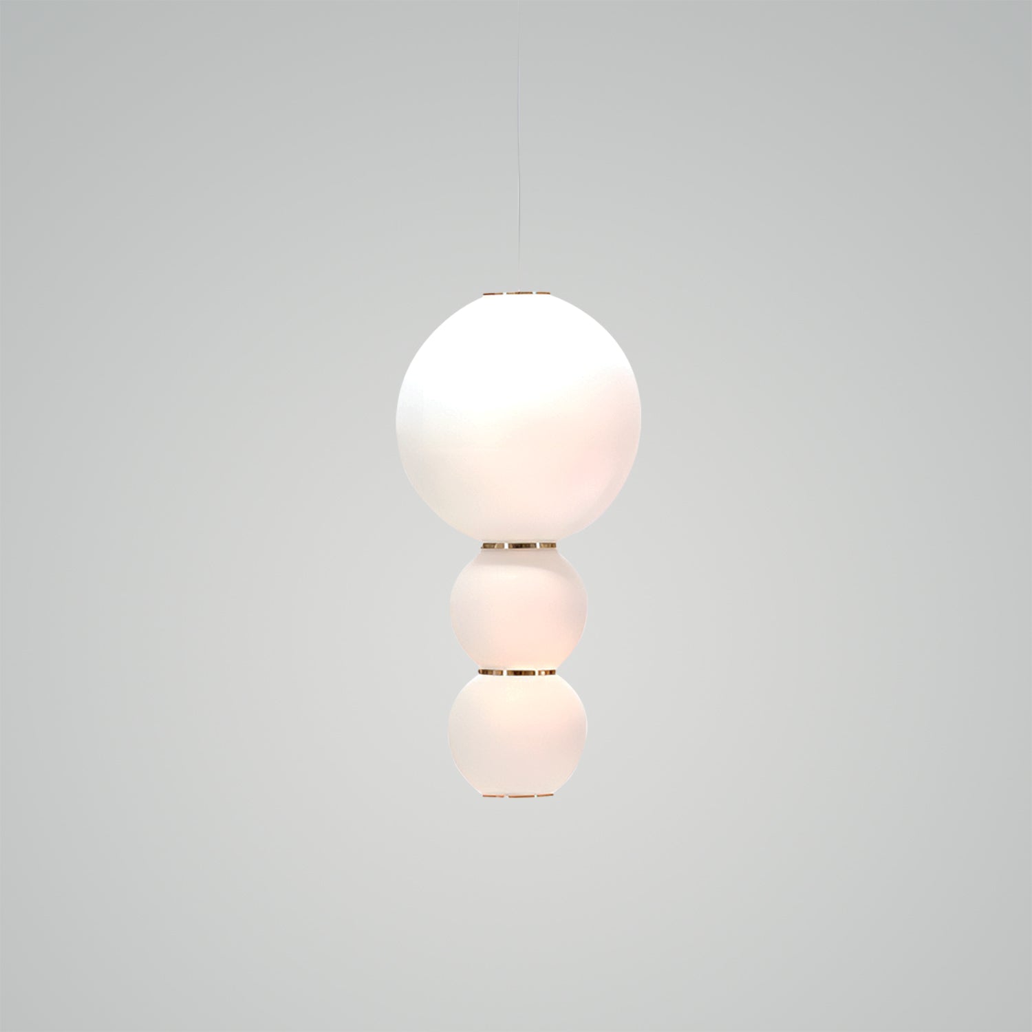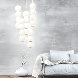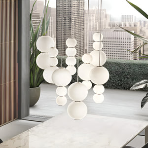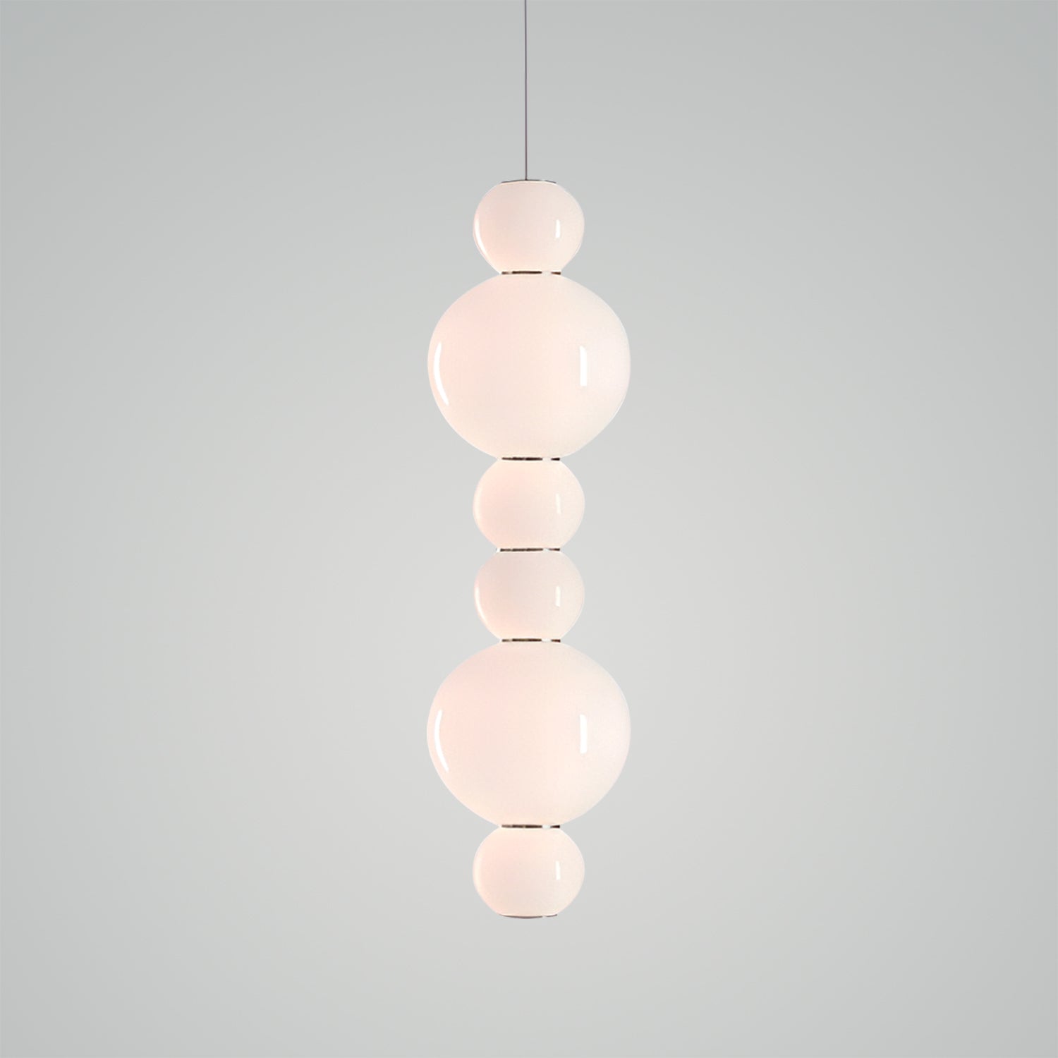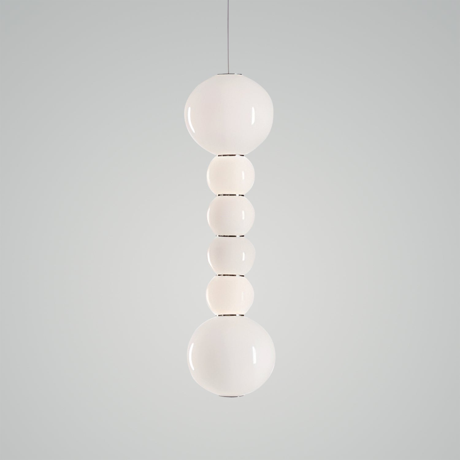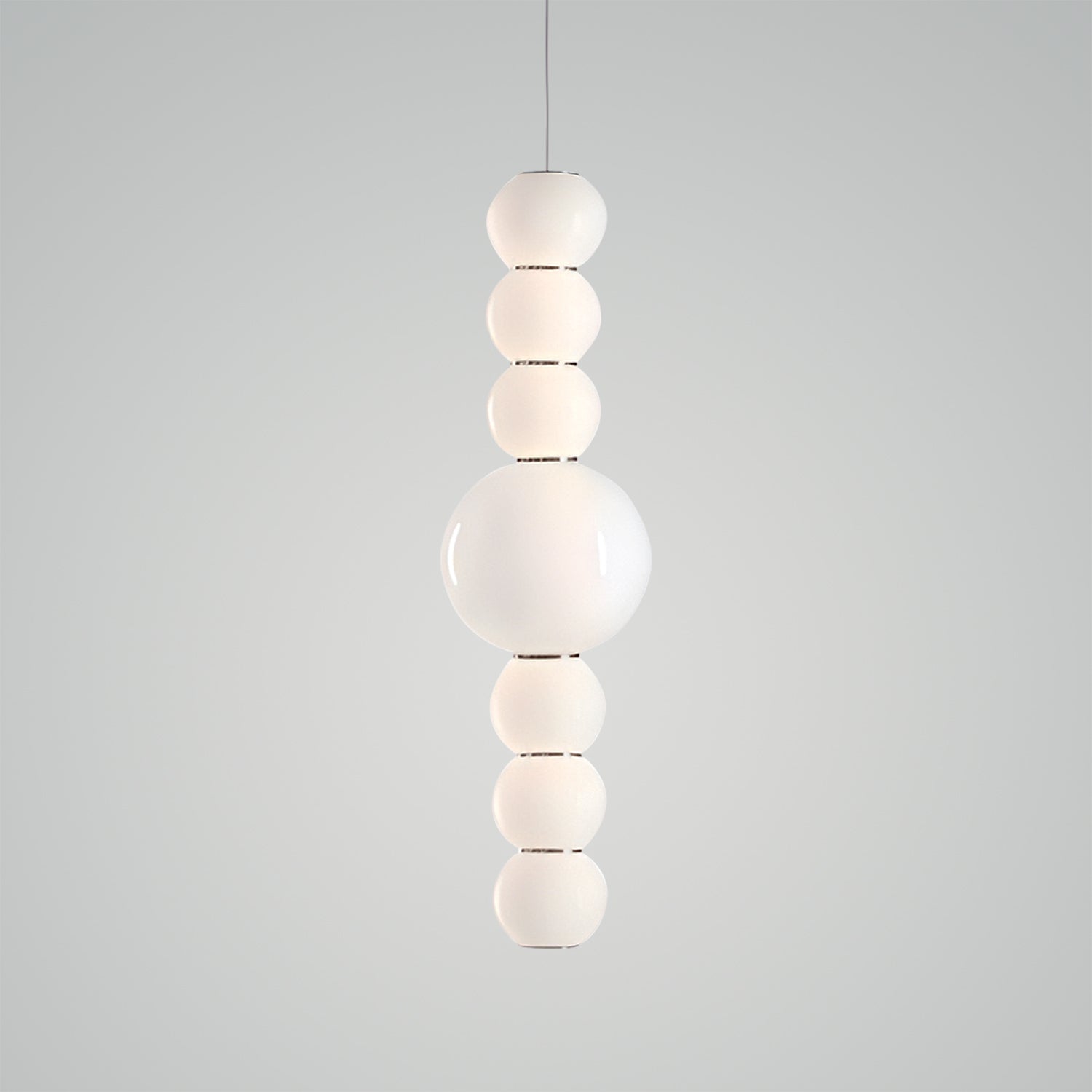 This chandelier is known for its timeless elegance and endless possibilities. By combining two different sizes of opal glass spheres, various arrangements and shapes can be created. When multiple versions of the chandelier are placed in a room, the decor remains cohesive, neither overly elaborate nor monotonous. It can be arranged in any configuration to provide perfect lighting for living rooms, above bars, staircases, or atriums, making it an absolutely eye-catching piece.
