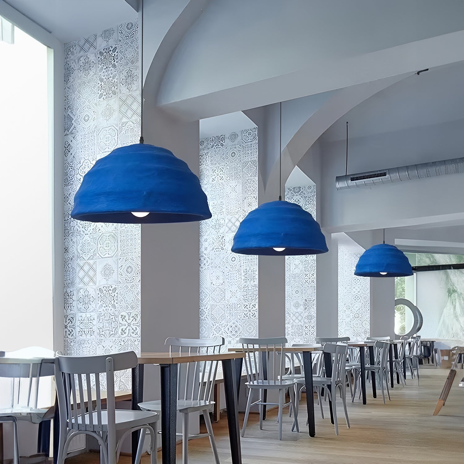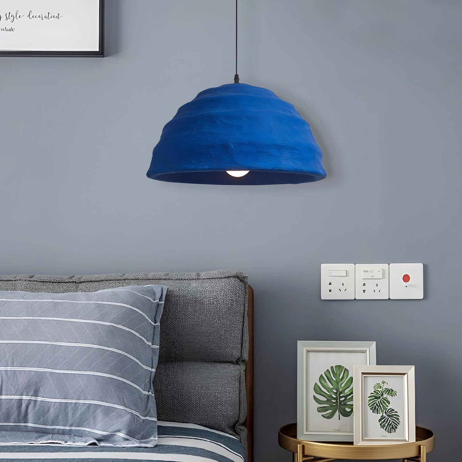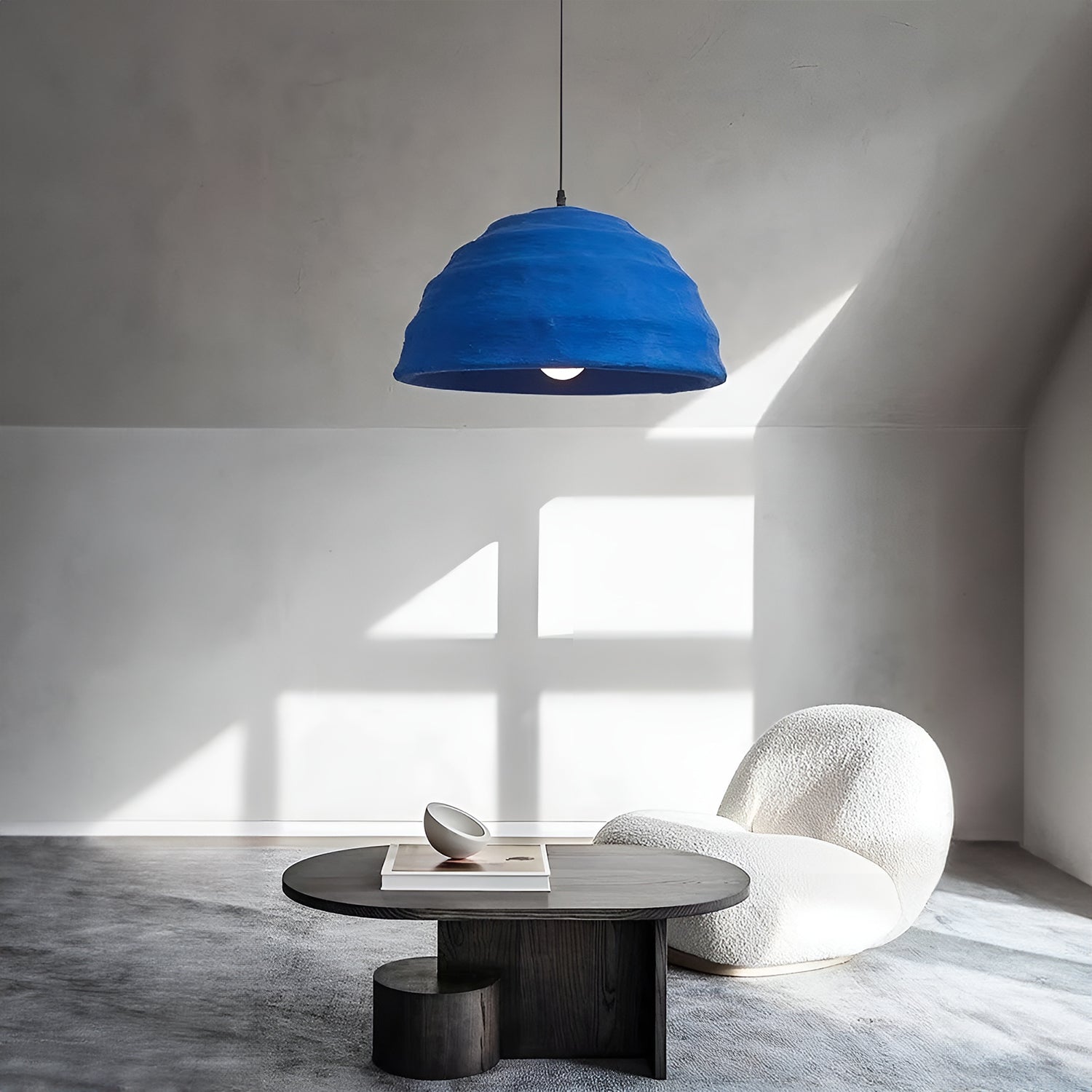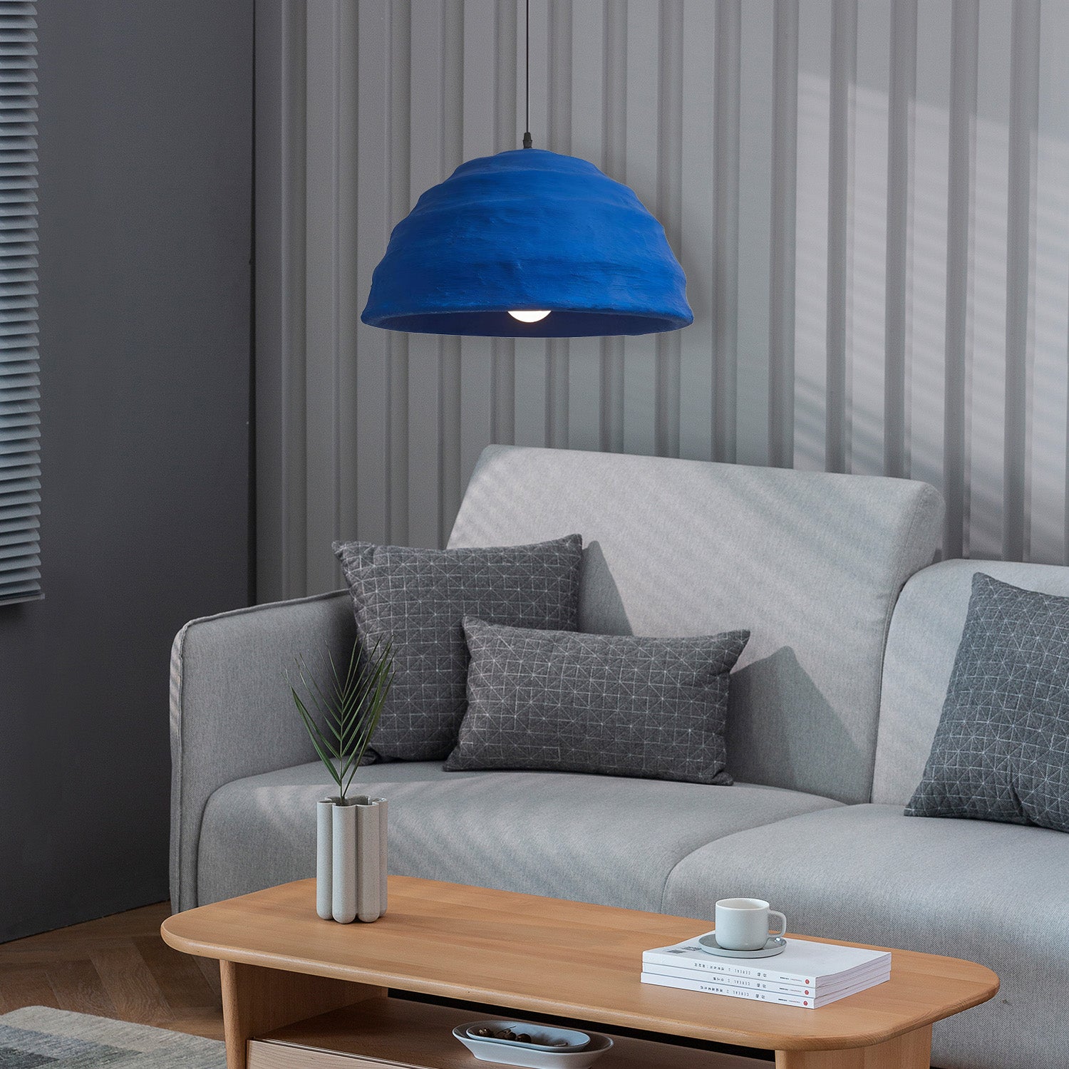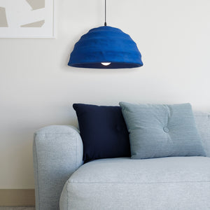Embrace a splash of bold color with the 'Pluto Pendant Lamp', where art meets illumination. Handcrafted with passion, this pendant lamp showcases the essence of wabi-sabi style with its textured, vibrant blue surface that captures the depth and serenity of the ocean. This statement piece is designed to be the centerpiece of any room, casting a warm glow and creating an atmosphere of tranquil sophistication. Perfect for those who appreciate the beauty in handmade imperfection, this lamp is not just a source of light but a work of art that celebrates uniqueness.