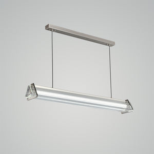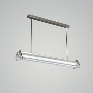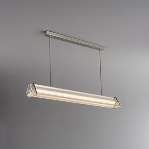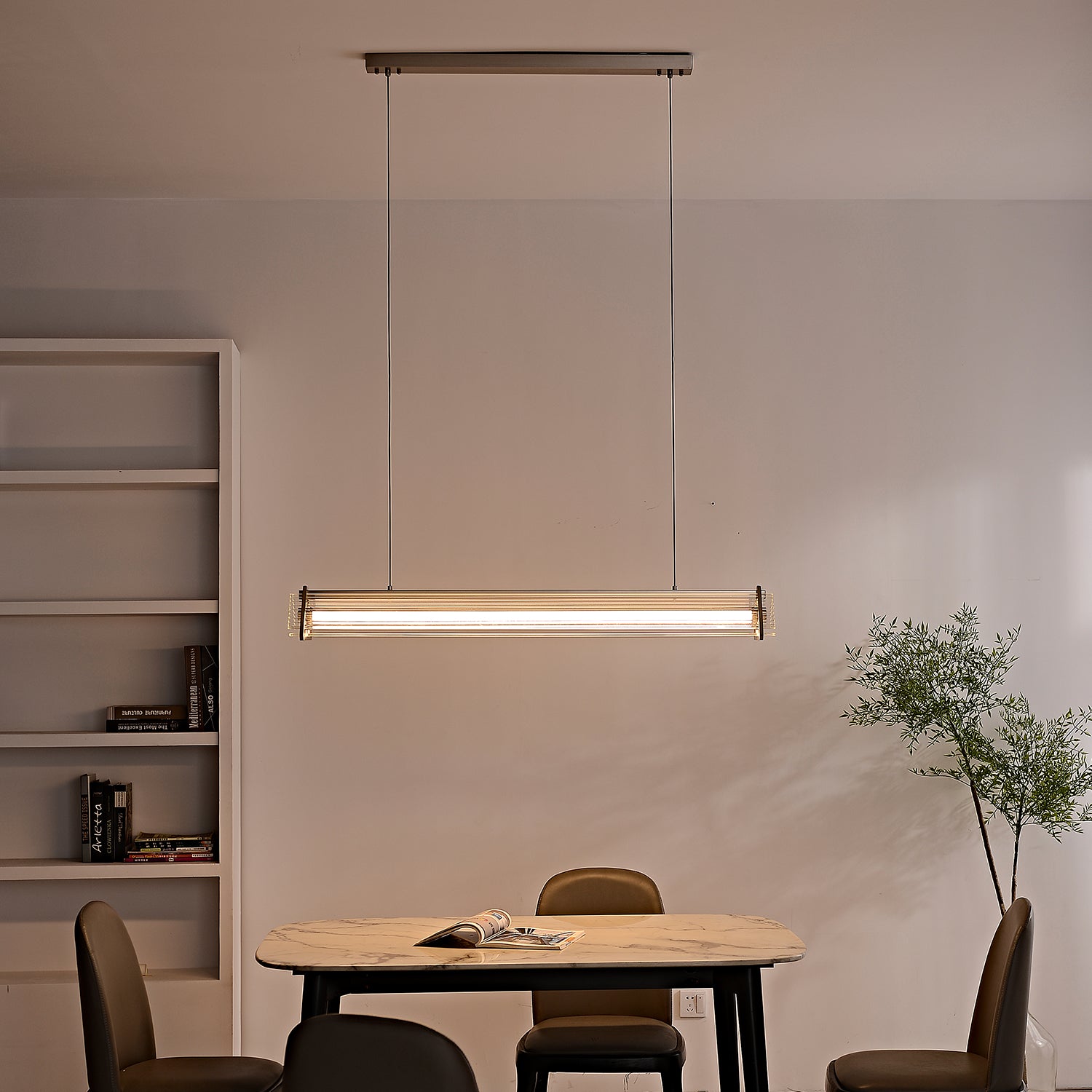 This elongated glass pendant light creates a captivating lighting effect as the light refracts through the glass. The combination of metal and striped glass offers a unique and eye-catching design, adding both interest and allure, making it a stunning focal point in your home.