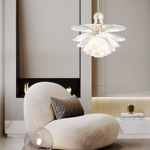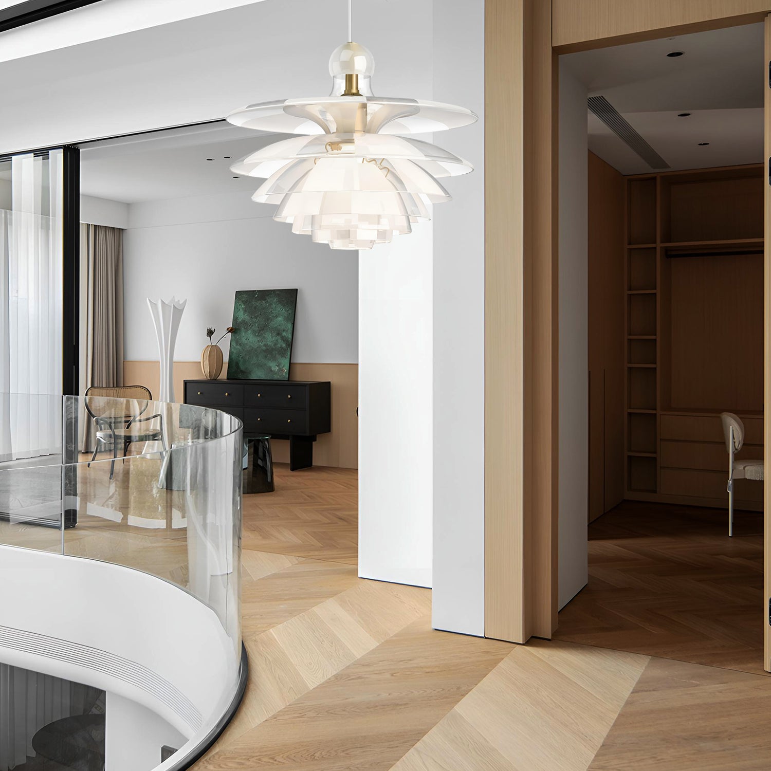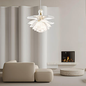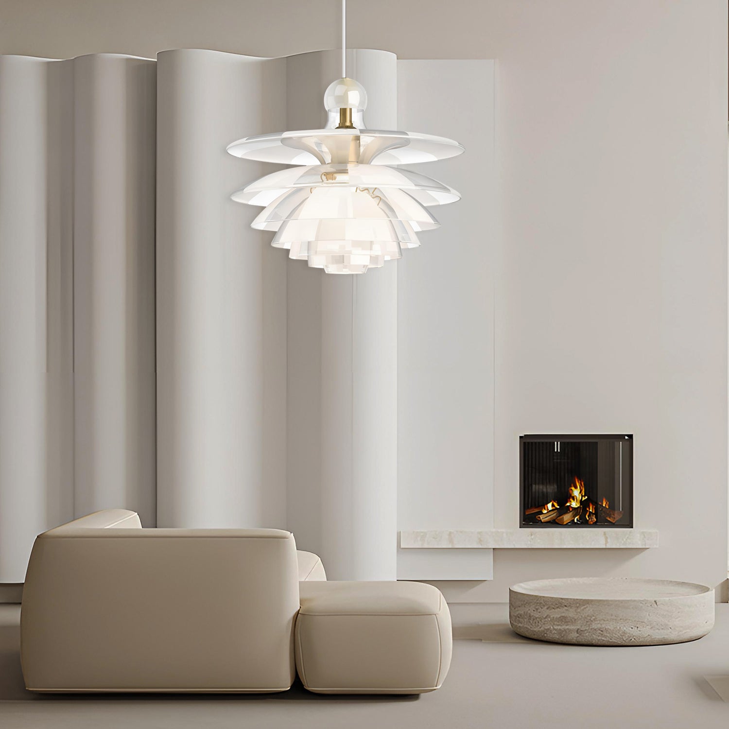 Discover the ethereal glow of the Septima Pendant Lamp, a masterpiece designed to transform any space into a serene haven. Meticulously crafted with multi-layered acrylic, each tier delicately diffuses light, creating a warm and inviting ambiance. This pendant is not just a light fixture; it's a centerpiece that exudes modern elegance. Dangling from a sleek suspension, it casts a soft, cascading light that sets the perfect mood for intimate dinners or tranquil evenings. Embrace a touch of sophistication and contemporary charm with the Luminous Cascade Pendant, where light and artistry meet.