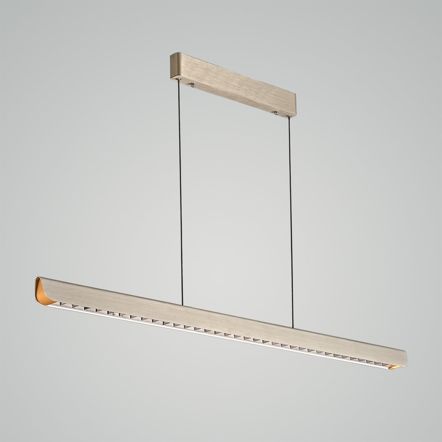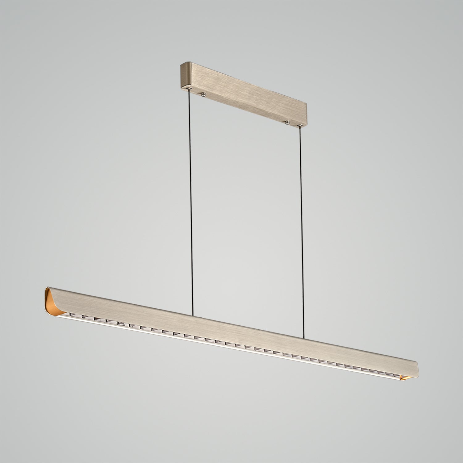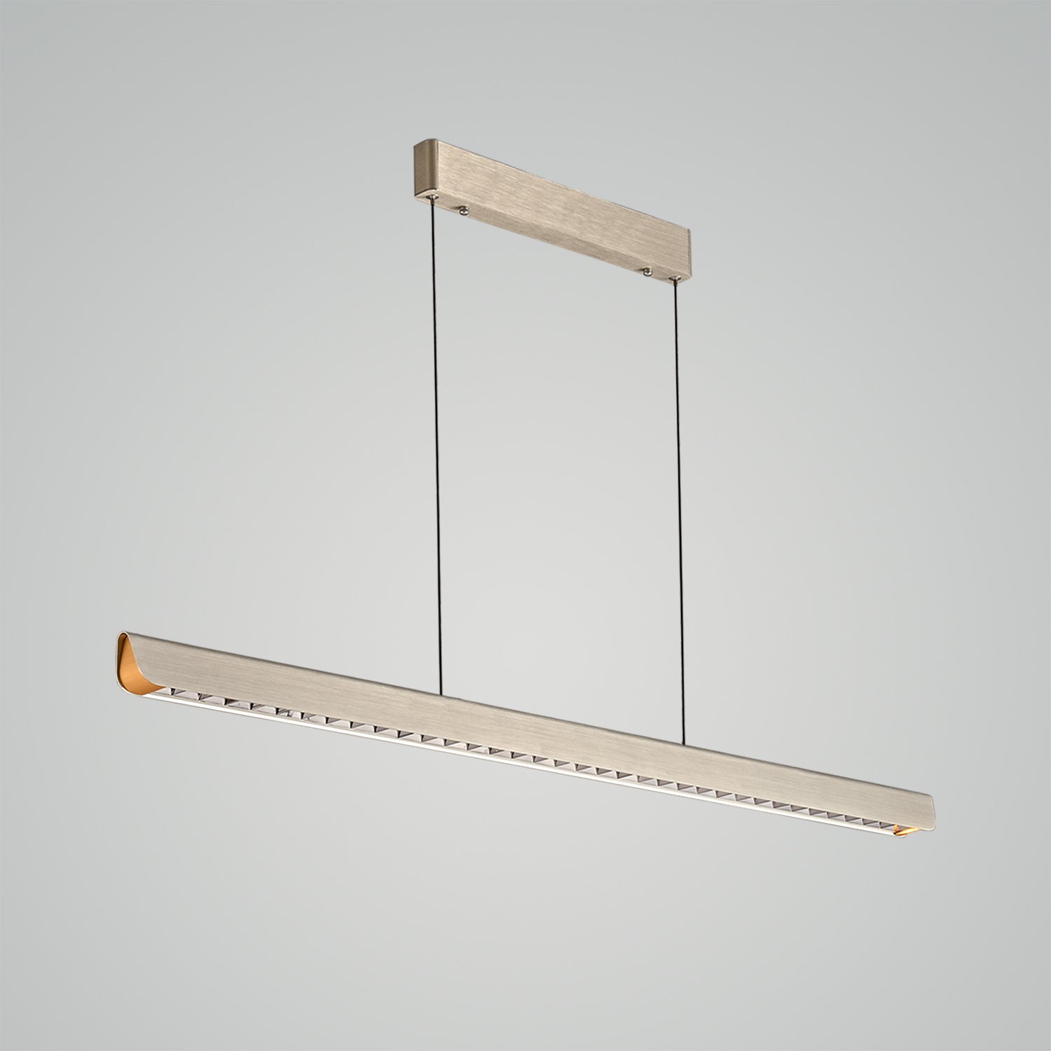Cast a sleek, modern glow over your favorite spaces with the "Streamline Pendant Light - 001." Its ultra-modern design features a slender, brushed metal bar suspended by fine cables, creating an illusion of floating light. Equipped with energy-efficient LEDs, this pendant provides crisp, linear illumination that's perfect for accentuating kitchens, dining areas, or any workspaces that benefit from focused lighting. Minimalist yet striking, this pendant light is the epitome of contemporary lighting design, blending seamlessly into sophisticated and streamlined interiors.
