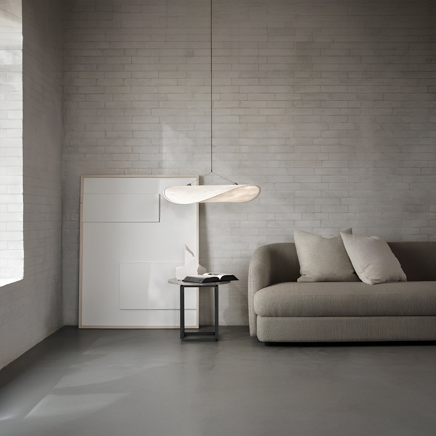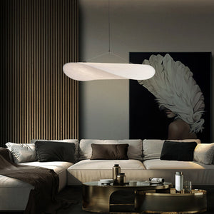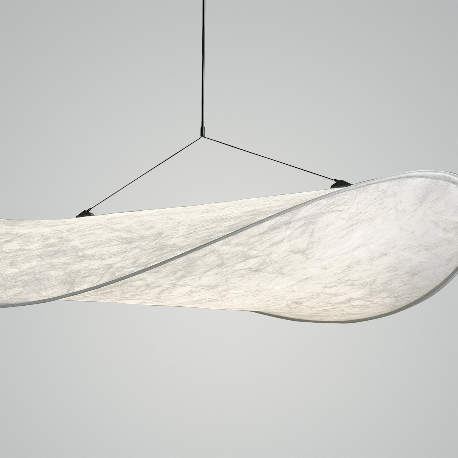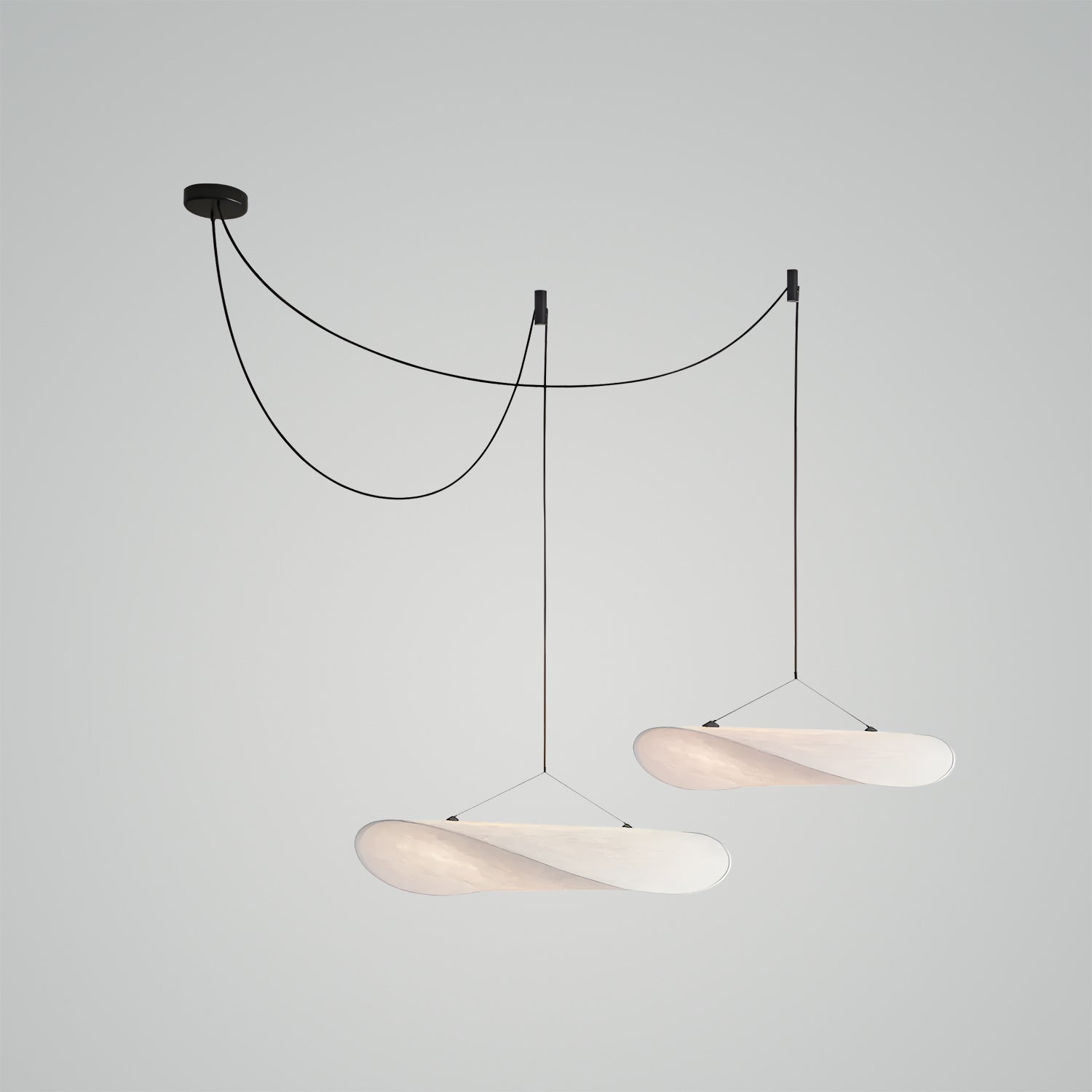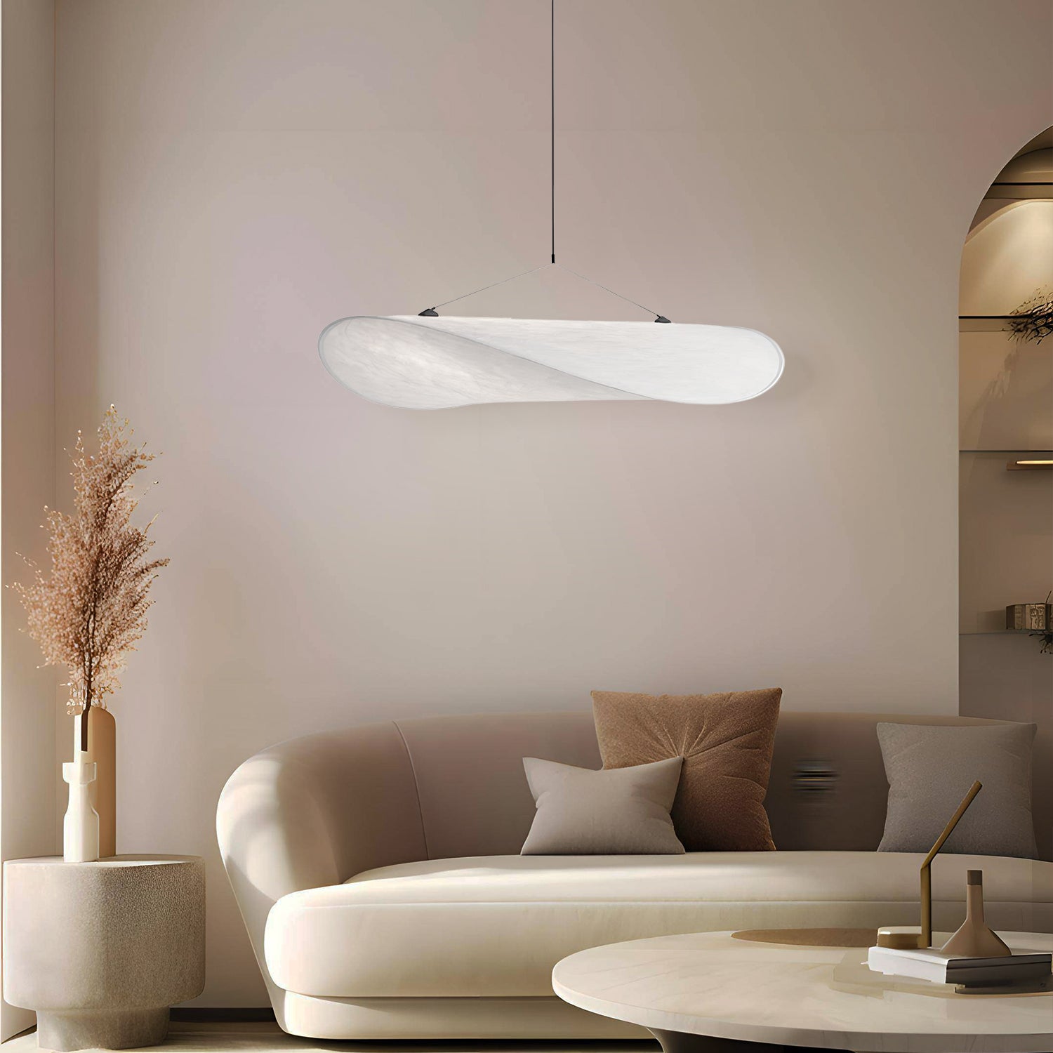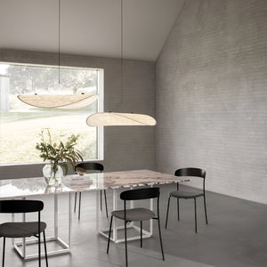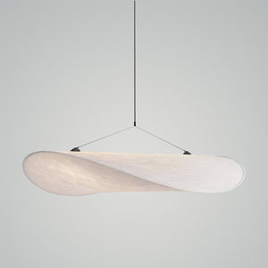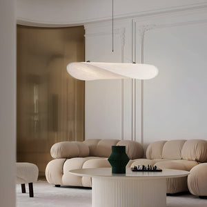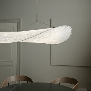 Introducing the Tense Tyvek Pendant Lamp - Serenity Wave Pendant Light where modern design meets the tranquility of nature. This sculptural piece is inspired by the gentle flow of ocean waves, crafted to bring a soothing element to your home decor. Its elegant, curvilinear form is suspended gracefully, casting a warm, diffuse light that complements any contemporary space. Made with a delicate wood veneer, the light's organic texture adds a touch of sophistication, while its minimalist design ensures it never overwhelms your aesthetic. Whether it's the focal point in a dining area or a serene addition to a reading nook, the Serenity Wave Pendant Light is an invitation to a calm and inviting ambiance.
