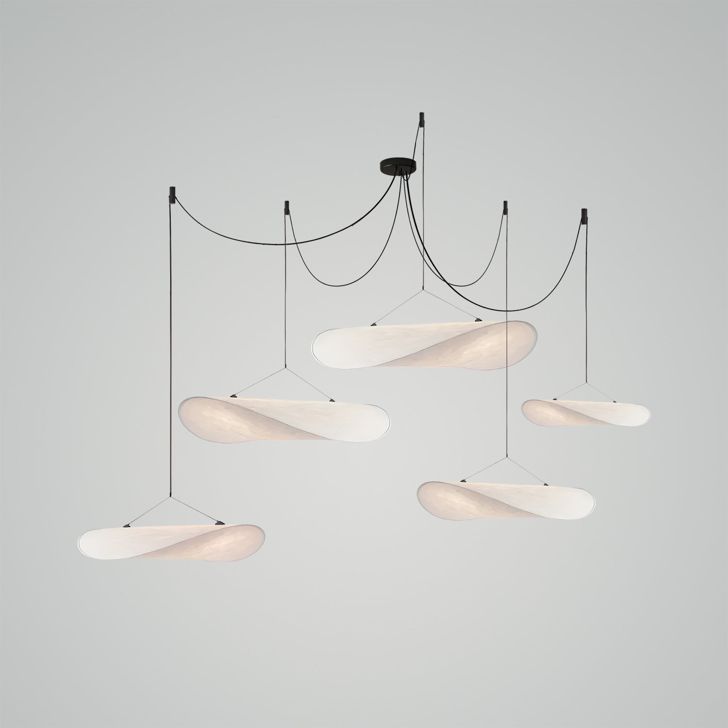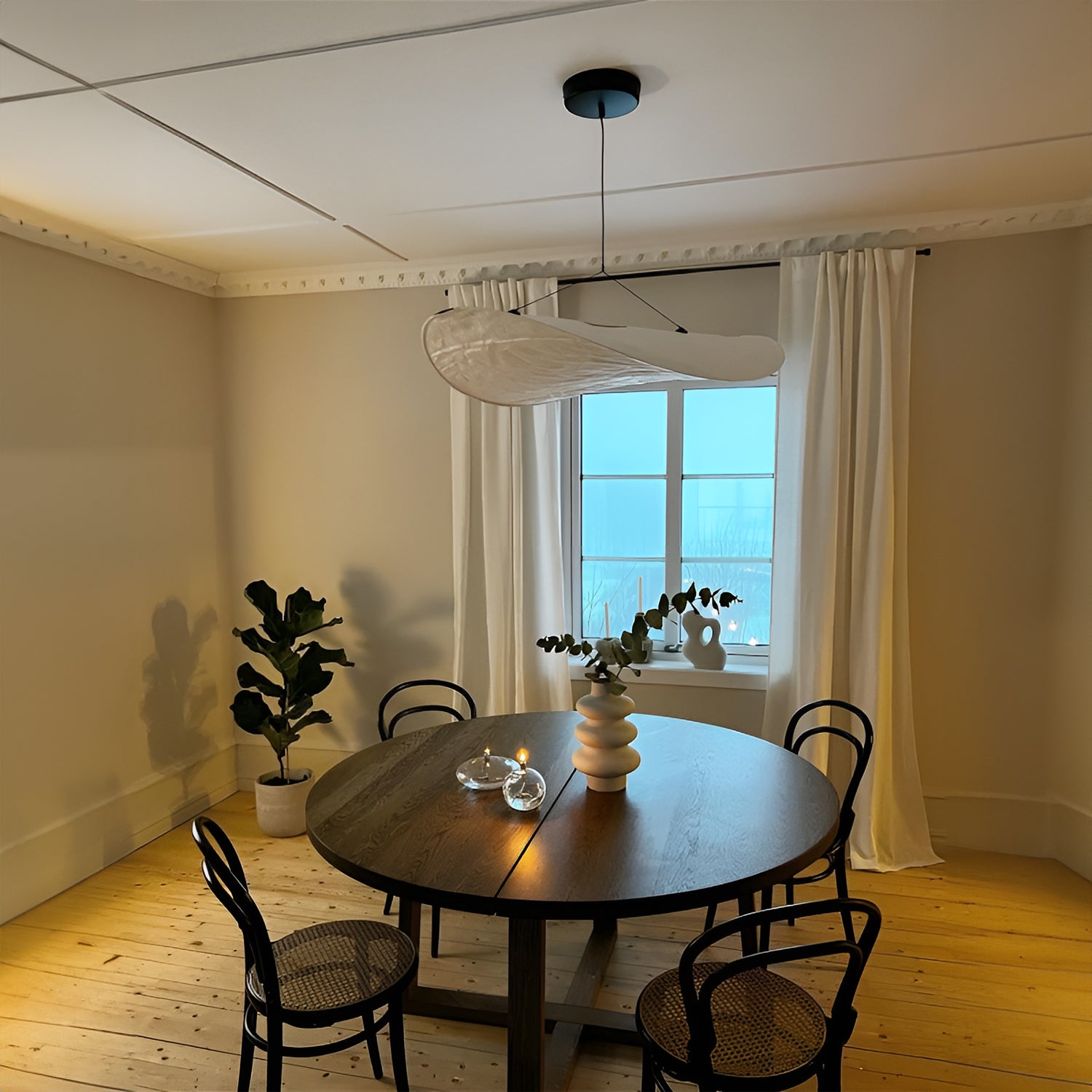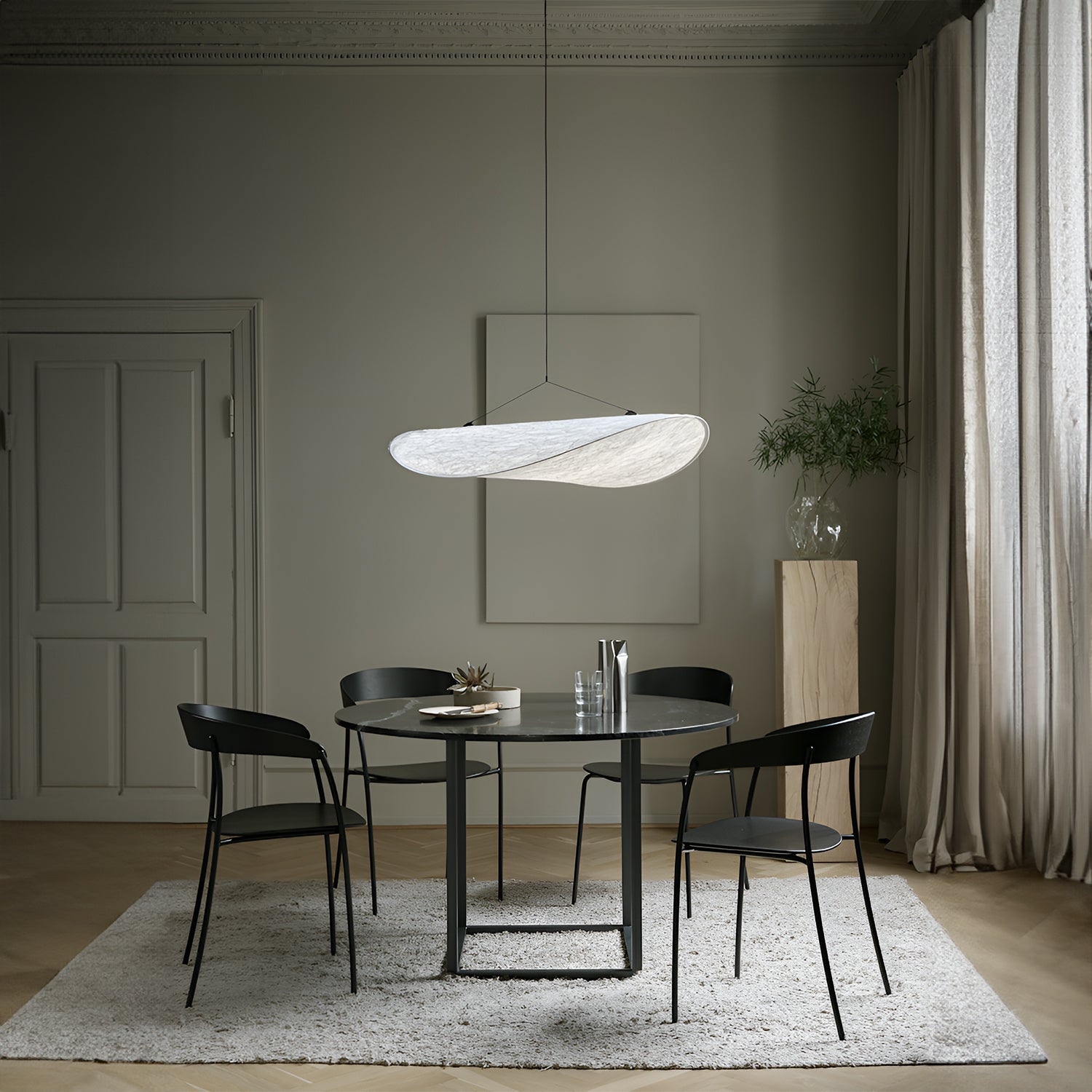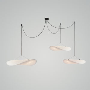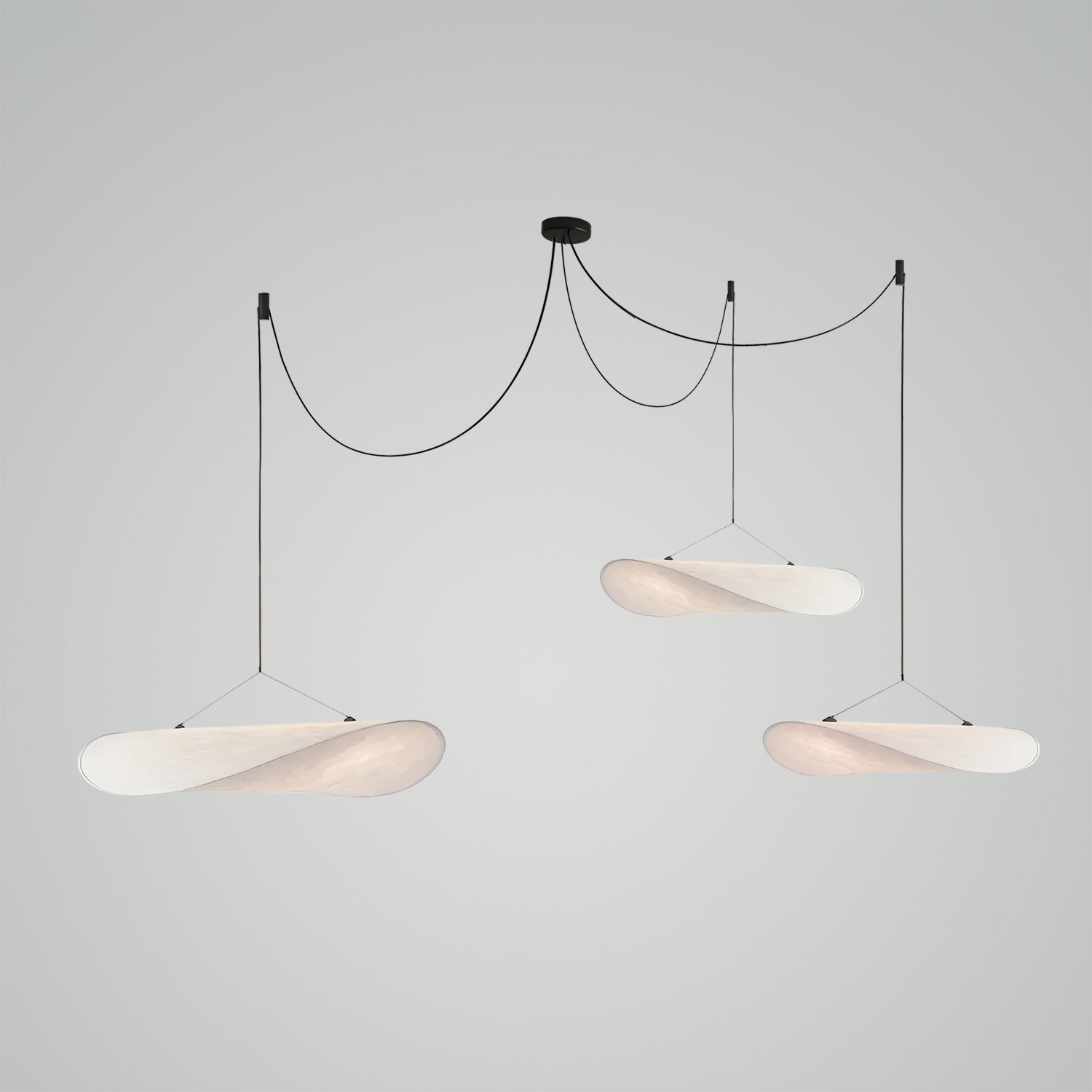 Introducing the Tense Tyvek Pendant Lamp - Serenity Wave Pendant Light where modern design meets the tranquility of nature. This sculptural piece is inspired by the gentle flow of ocean waves, crafted to bring a soothing element to your home decor. Its elegant, curvilinear form is suspended gracefully, casting a warm, diffuse light that complements any contemporary space. Made with a delicate wood veneer, the light's organic texture adds a touch of sophistication, while its minimalist design ensures it never overwhelms your aesthetic. Whether it's the focal point in a dining area or a serene addition to a reading nook, the Serenity Wave Pendant Light is an invitation to a calm and inviting ambiance.