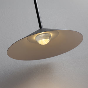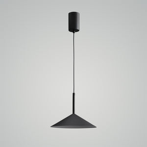 The Altura Suspension is a striking pendant lamp designed specifically for dining areas. It features a vertical thin steel rod and a cone-shaped lampshade, which houses lightweight materials and advanced technology.
