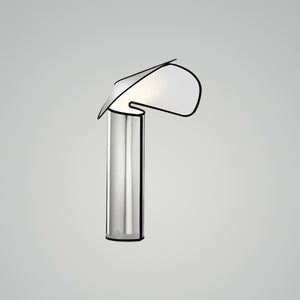 The structure of the Chiara table lamp conceals an LED lighting source that bounces off the top hat-like structure, casting a diffuse light.