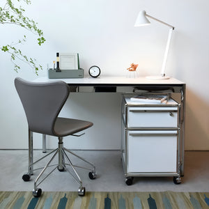 This lamp is designed by a Japanese design studio and its designer. The NJP Table is a reinterpretation of the classic architect's lamp. Its simple and honest appearance reveals the functional components of the lamp, making its expression self-evident. The application of the lamp tube considers every detail: the two joints on the lamp arm provide great flexibility, making it easy to adjust the lamp's position. As an additional touch, the spring is exposed in the arm joint, contributing to the lamp's decorative expression. Similarly, the rear shade opening facing the arm allows for stepless adjustment of the LED unit's head and ventilation.