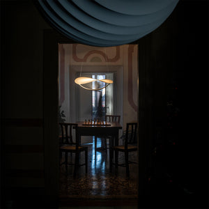 Plena is a pendant lamp made of PVC and painted aluminum.