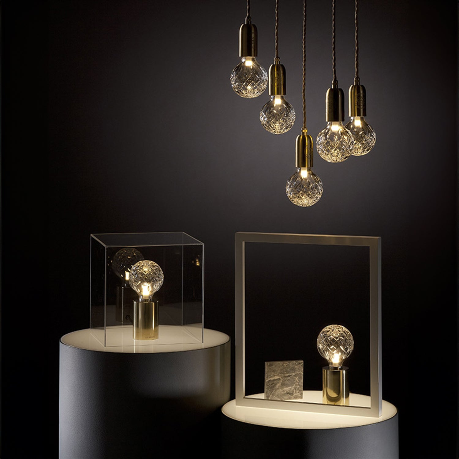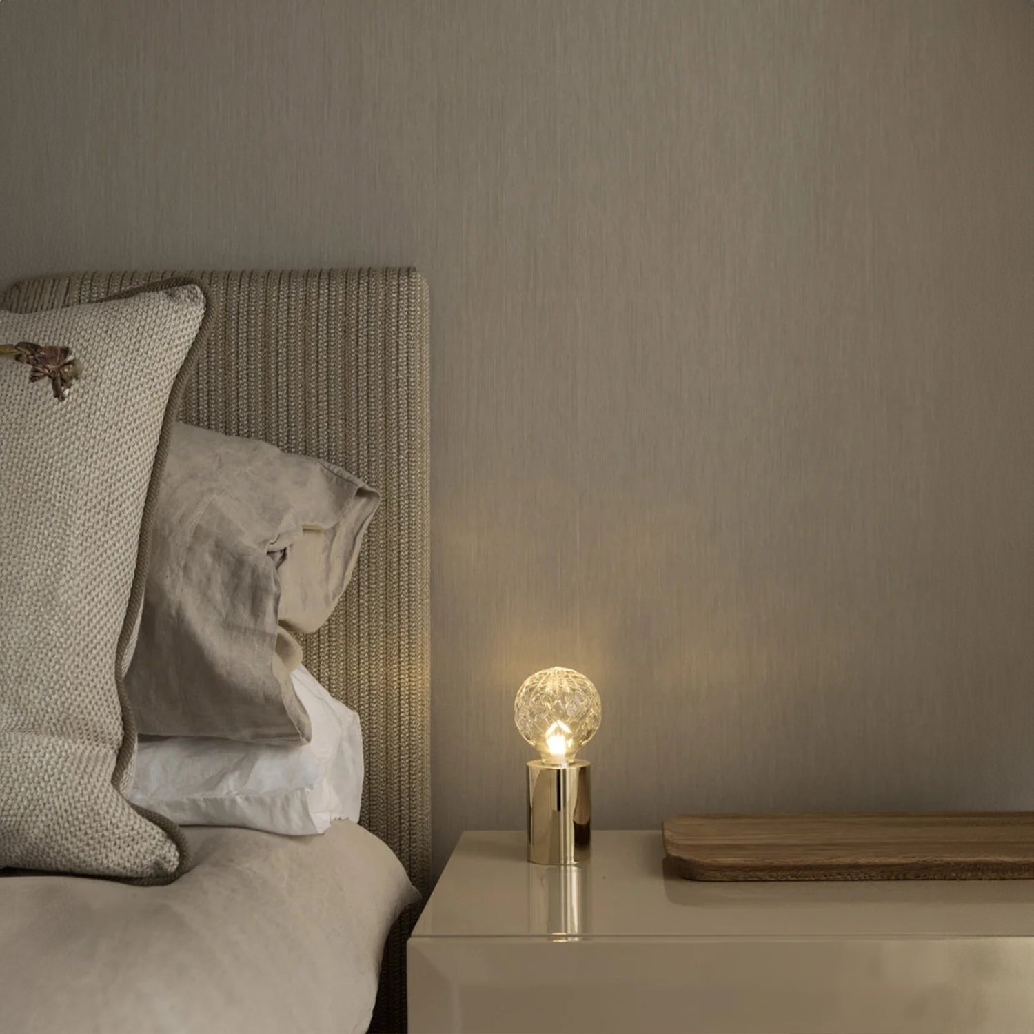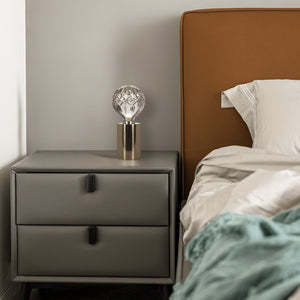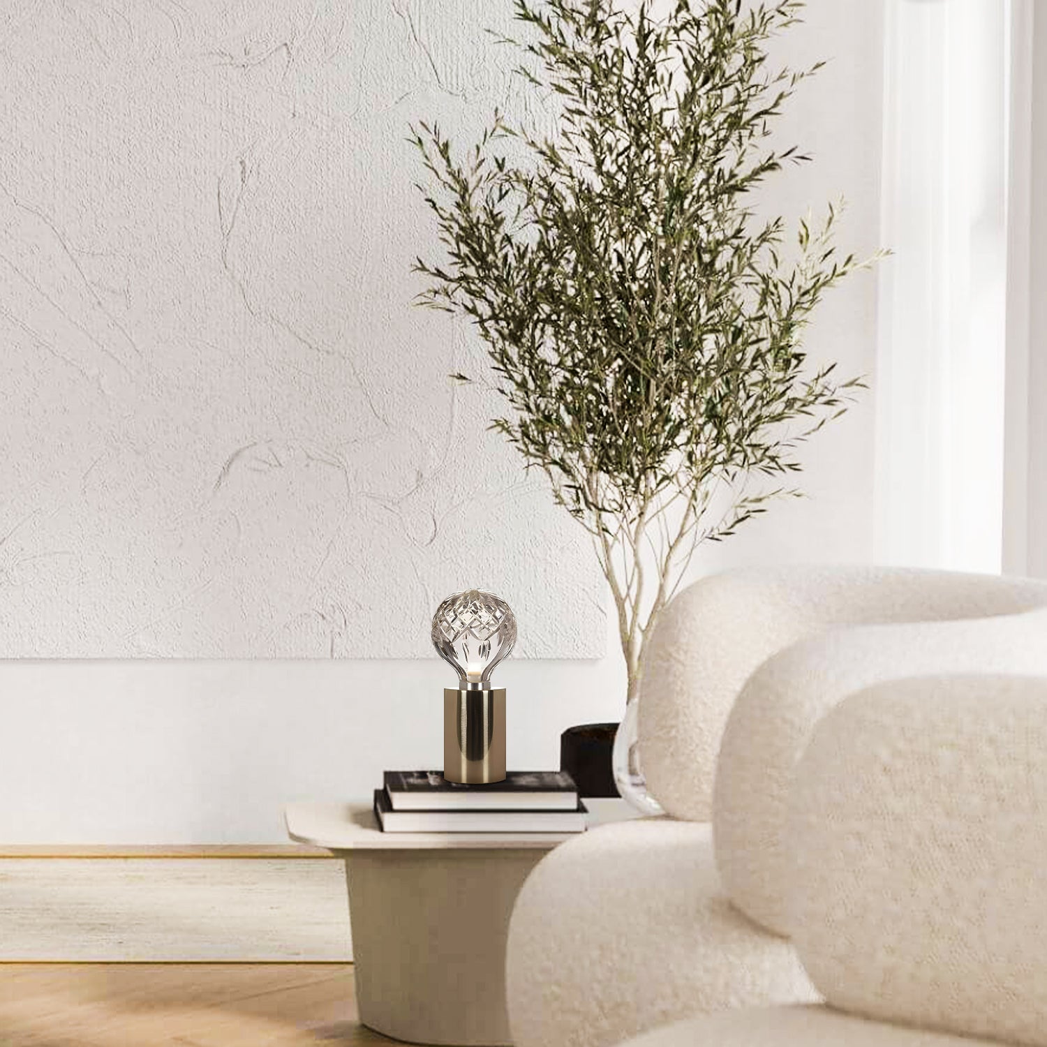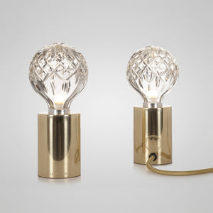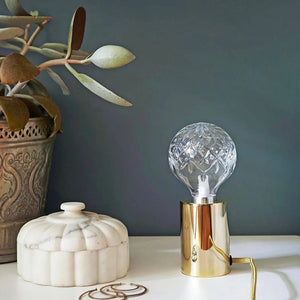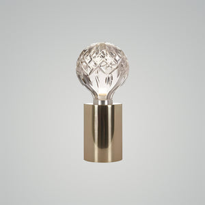 Introducing the Crystal Bulb Table Lamp, a stunning display of craftsmanship and minimalist design. This table lamp features a beautifully faceted crystal bulb that sits atop a sleek brushed brass base, providing not just illumination but a touch of sophistication to any room. The crystal's intricate cuts create a captivating sparkle that enhances the light, adding a luxurious ambiance to your space. Ideal for creating a focal point on an end table, nightstand, or desk, this lamp combines the clarity of crystal with the warmth of the brass to create a modern yet timeless aesthetic. Perfect for those who appreciate the finer details and want to add a sense of luxury to their decor, the Elegance Illuminated Crystal Accent Lamp is a small but impactful addition to any interior.