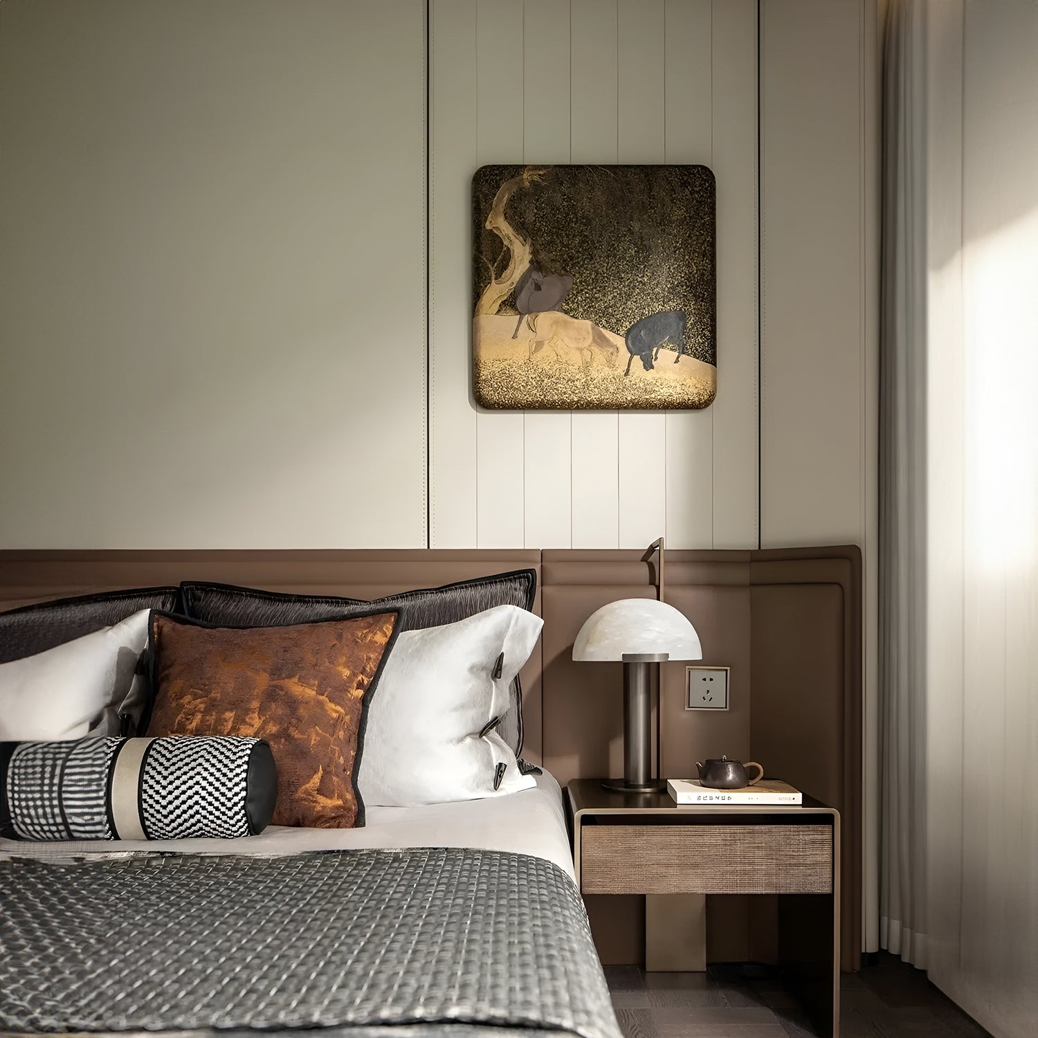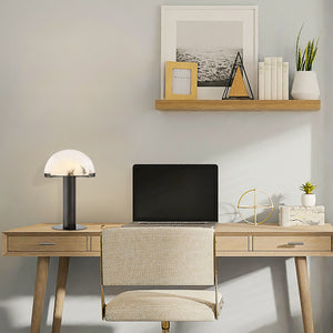 Discover the epitome of sophistication with the Elegance Alabaster Table Lamp . This exquisite table lamp is a masterpiece of design, blending the timeless beauty of translucent marble with a touch of modern mixed-media artistry. The warm, gentle glow emanates through the marble's natural veining, providing a serene and luxurious ambiance to any space. With its sleek golden accents and sturdy construction, this lamp is not only a source of light but a statement piece that speaks volumes about your refined taste. Illuminate your world with an air of elegance that complements any décor. The Elegance Vein Marble Illuminator is more than a lamp; it's a beacon of style.
