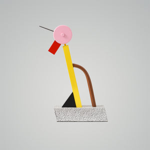 In 1981, a designer, often regarded as the godfather of "Italian cool," created this vibrant and iconic post-modern table lamp.