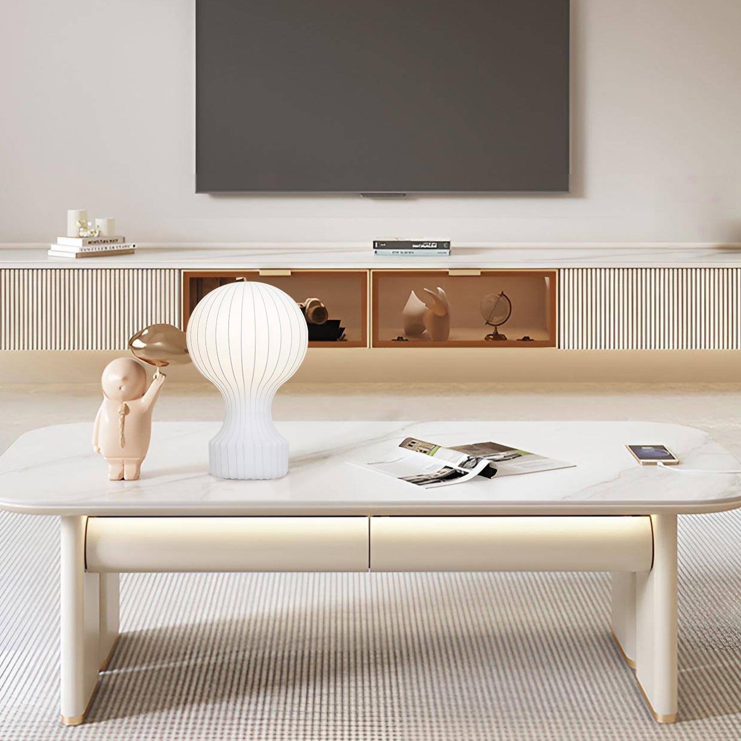 Introducing the "Hot Air Balloon Table Lamp," a luminary that captures the whimsical essence of a hot air balloon. This lamp is an homage to the wabi-sabi philosophy, where the elegance of simplicity and the art of imperfection are celebrated. Crafted with a delicate silk exterior that softly diffuses light, this lamp brings a warm, soothing ambiance to any room. Its sculptural base, reminiscent of a hot air balloon ready for flight, adds a touch of adventure and nostalgia. Perfect for a serene bedroom or a cozy reading nook, the "Serene Sojourn Silk Table Lamp" is an invitation to unwind and let your imagination take flight with its calming glow.