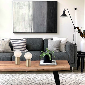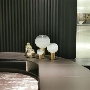 Introducing the Laguna Table Lamp, an embodiment of minimalist beauty and serene lighting. This lamp features a perfectly round glass globe that rests on a sleek, cylindrical brass base, creating an ethereal glow to light up your evenings. Its gentle gradient effect adds a touch of softness to the light, providing a soothing ambiance for any room. Ideal for those seeking a blend of simplicity and elegance, the Luminous Orb Table Lamp is a versatile addition to any contemporary home, offering a warm and inviting luminescence to your bedside, living space, or office.