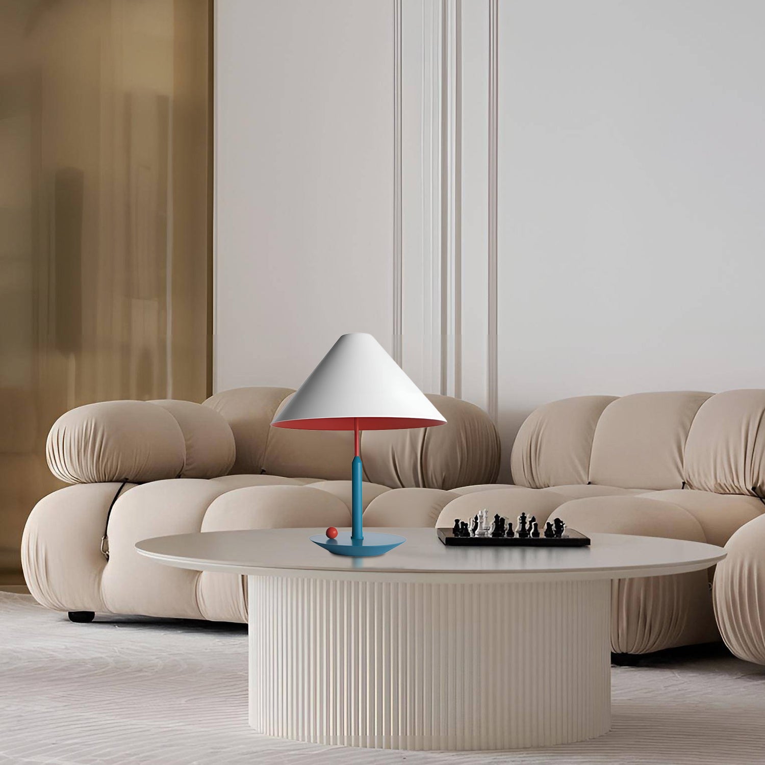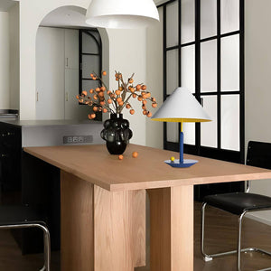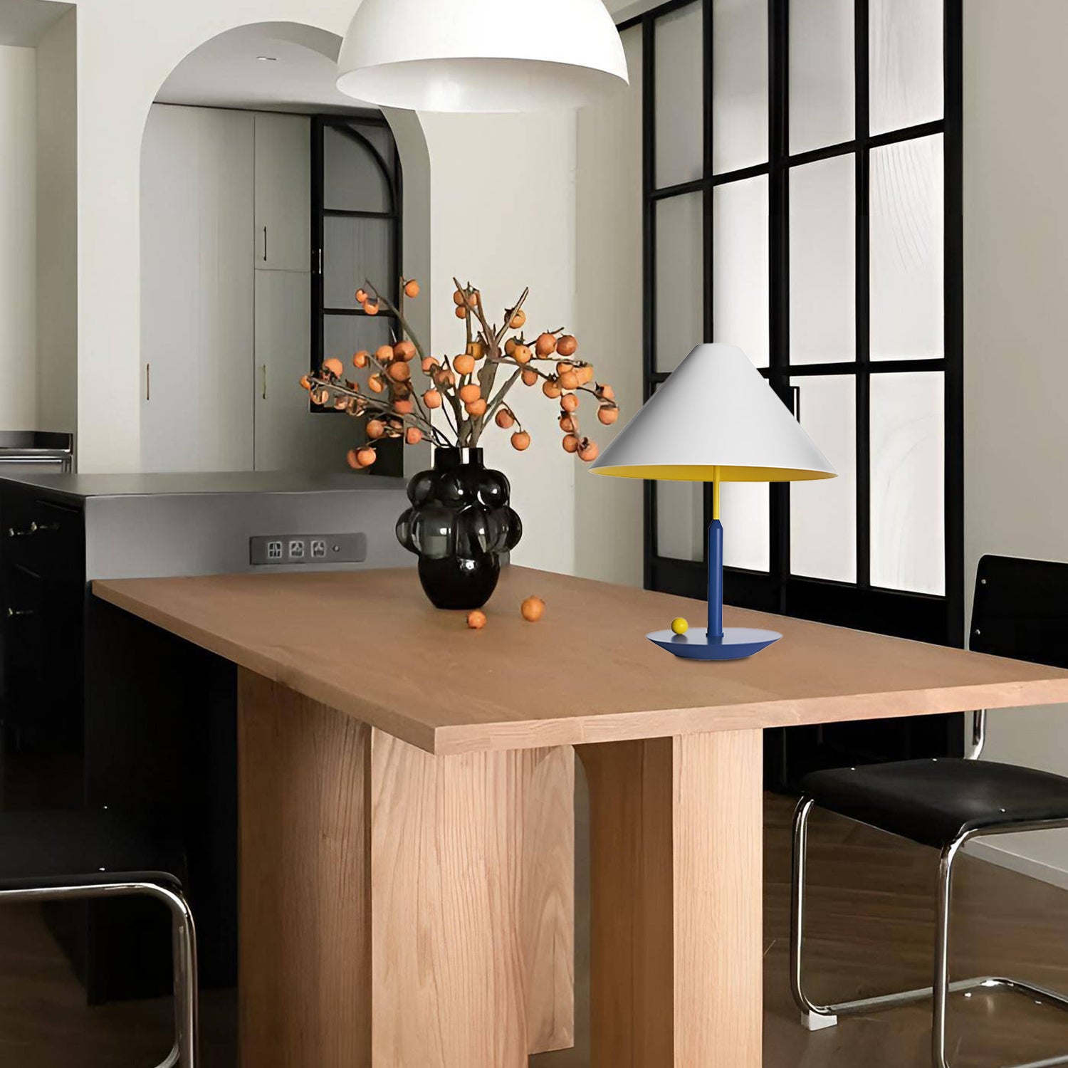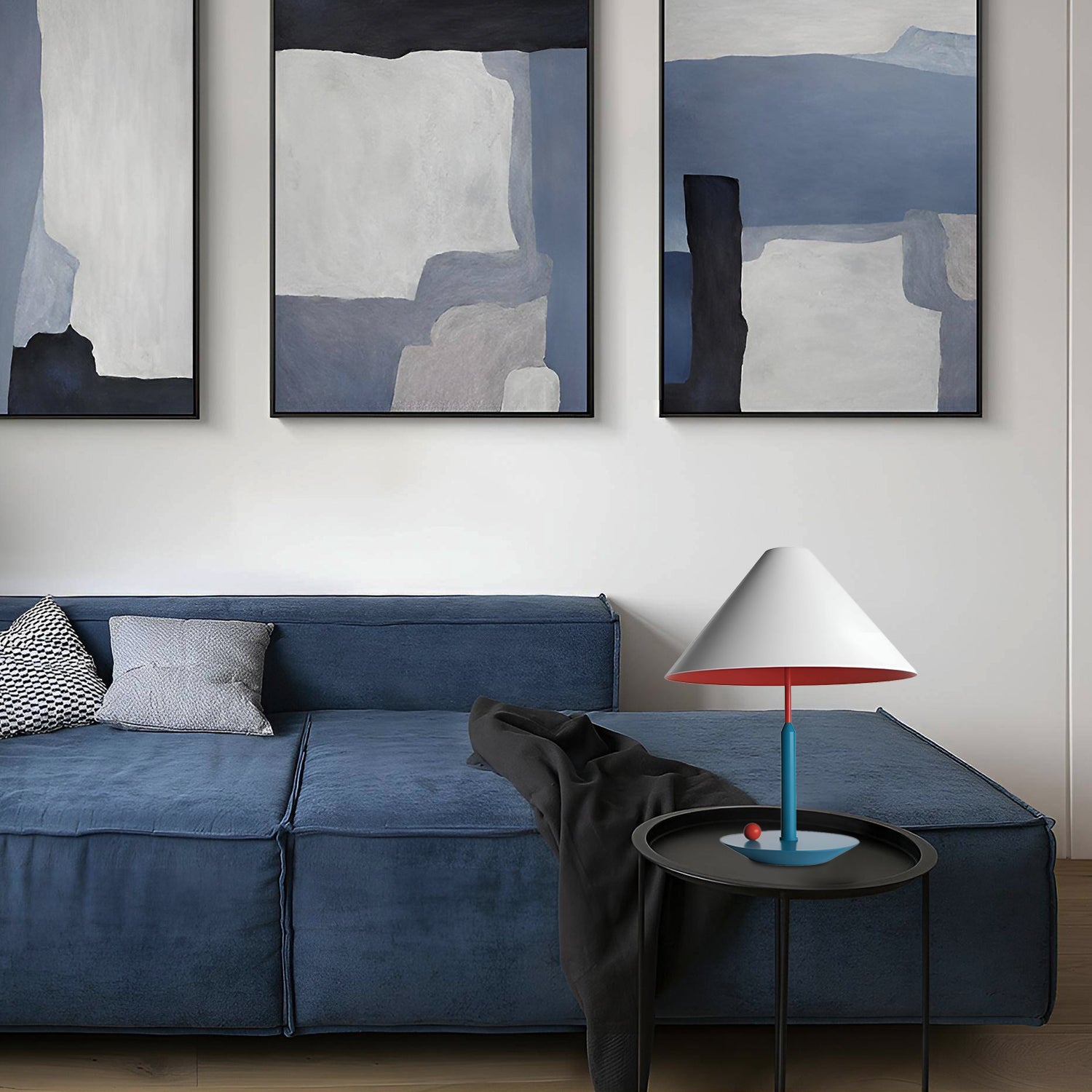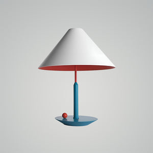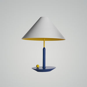 Introducing the Little Eliah Table Lamp, the epitome of modern elegance and functional design. With its striking geometric lines and bold color contrasts, this lamp is a statement piece that doesn't just illuminate your space, but transforms it. The lamp features a smooth, navy-blue base and a slender, golden-hued rod that culminates in a crisp, white shade, effortlessly combining art with utility. Perfect for contemporary homes and offices, the SleekSphere adds a touch of sophistication and warmth to any desk or bedside table. Illuminate your world with this sleek addition that's designed not just to light up a room, but to elevate it.
