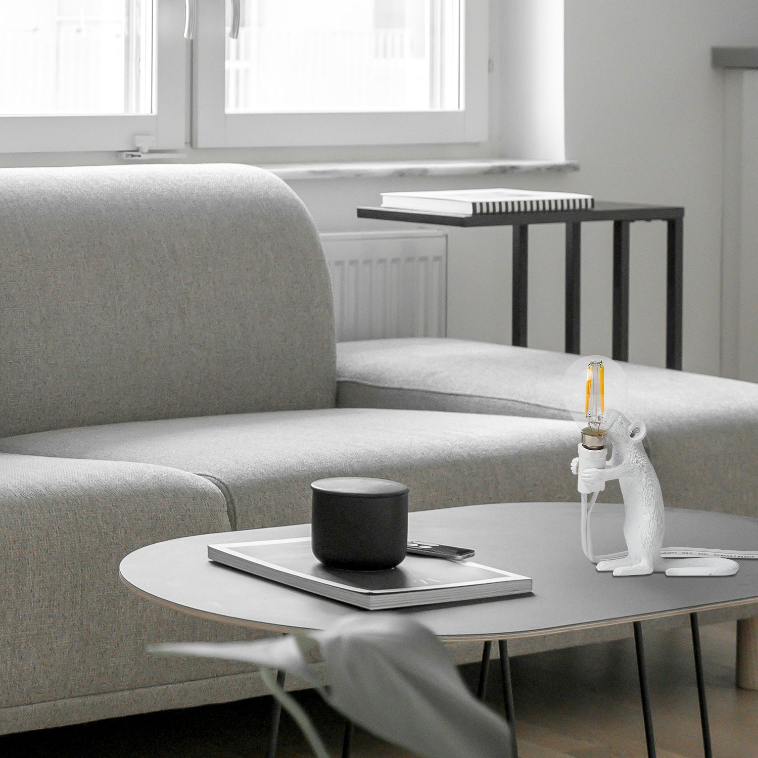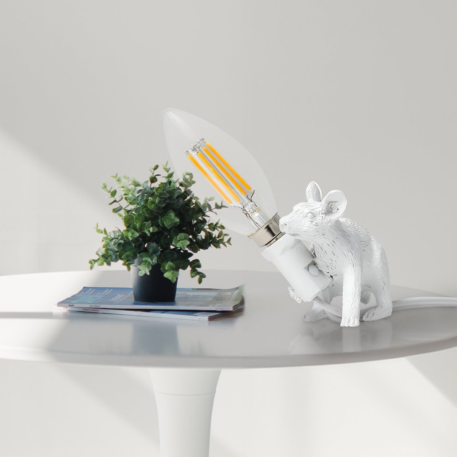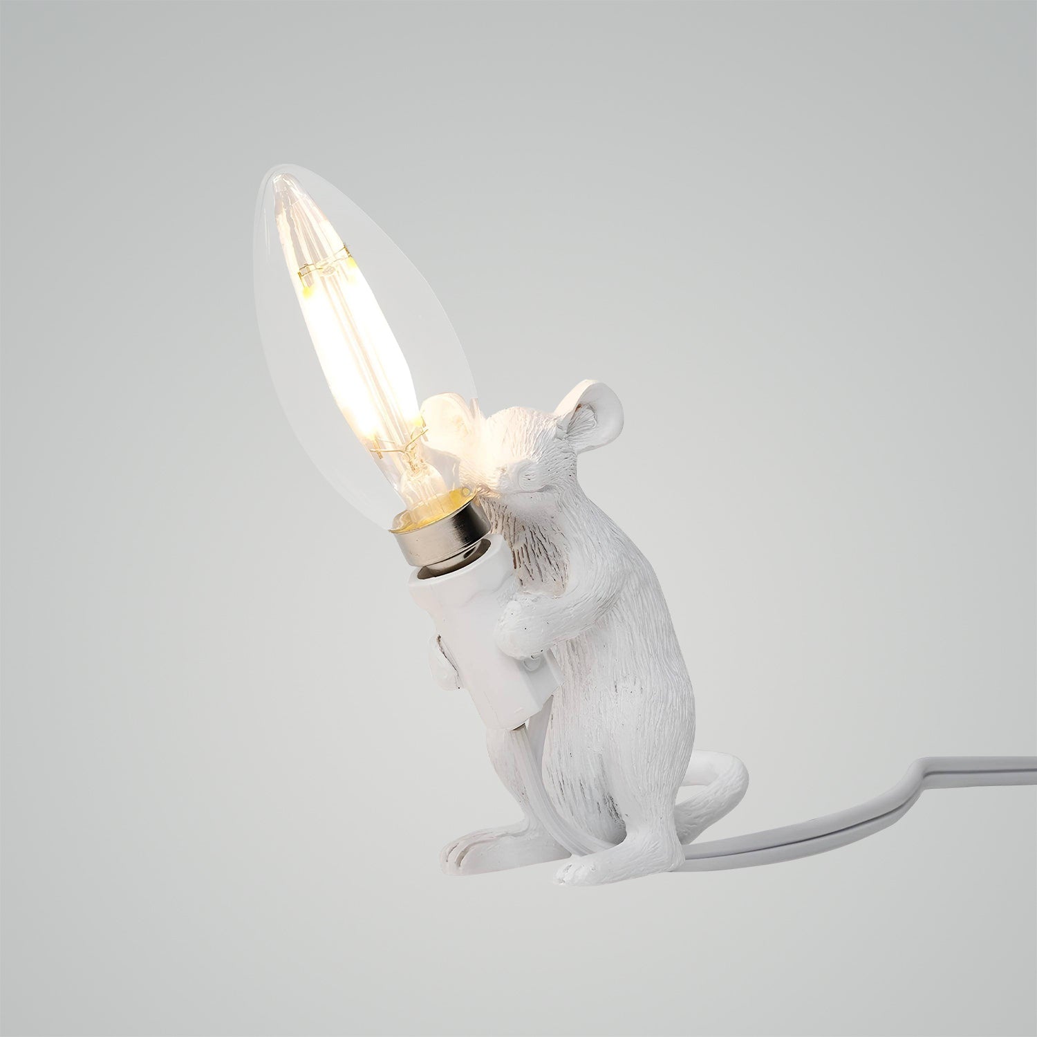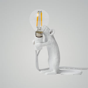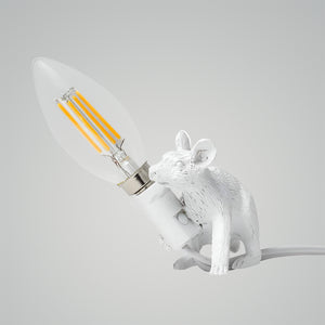 Introducing the 'MOUSE LAMP - Whimsical Rodent Glow Lamp' - where charming design meets functional art. This unique table light features a meticulously crafted resin mouse that seems to ponder the world as it holds aloft a modern, LED filament bulb. Perfect for adding a touch of playful elegance to any room, it combines the quaint appeal of a woodland creature with the clean lines of contemporary lighting design. Brighten up your space with a piece that's sure to spark conversations and light up smiles.