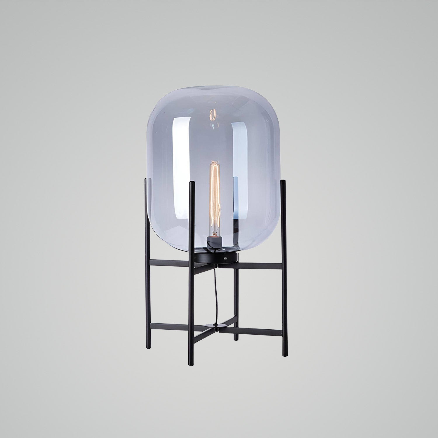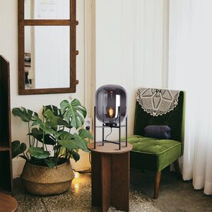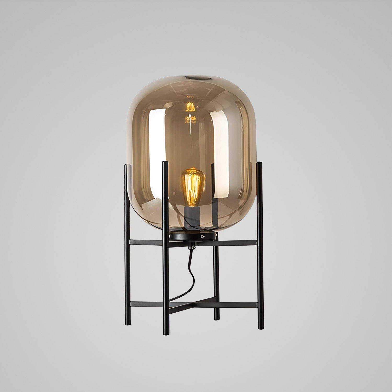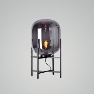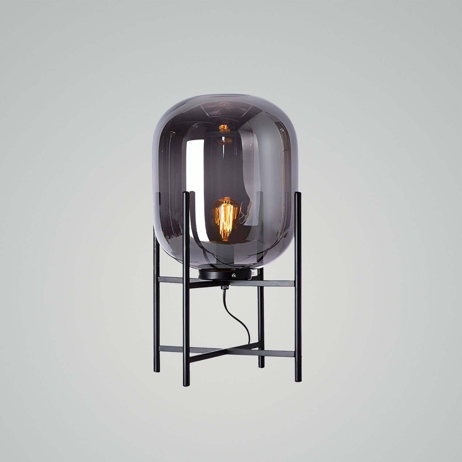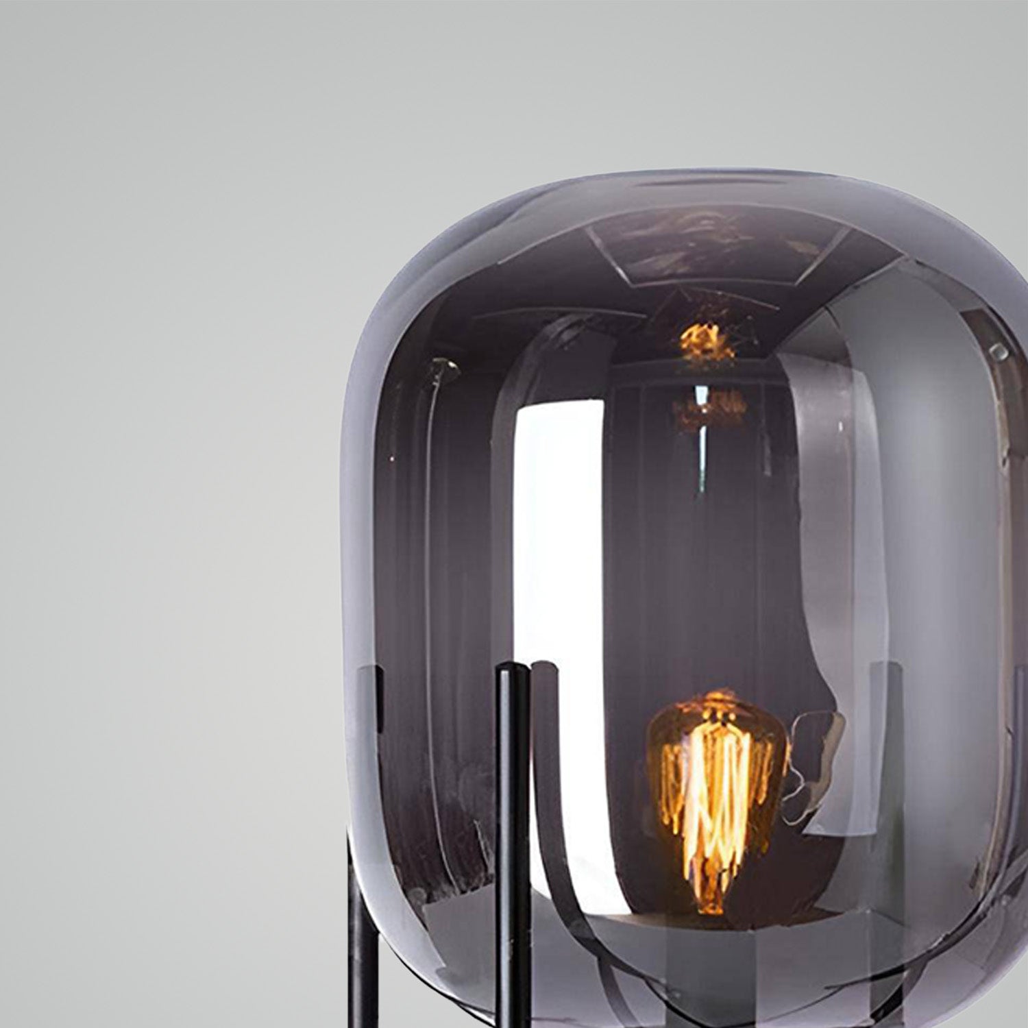 Introducing the "Oda Table Lamp," a harmonious fusion of industrial chic and contemporary design. This lamp features a bold, smoked glass dome that is both striking and subtle, set upon a minimalist matte black frame. The clear, vintage-inspired bulb at its center casts a warm, ambient glow, creating a cozy atmosphere in any room. Ideal for adding a touch of modern sophistication to your desk, bedside table, or lounge area, the "Eclipse Capsule Table Lamp" combines functionality with a unique aesthetic appeal. Its captivating design is a statement piece that not only lights up your space but also reflects your taste for the elegantly understated.