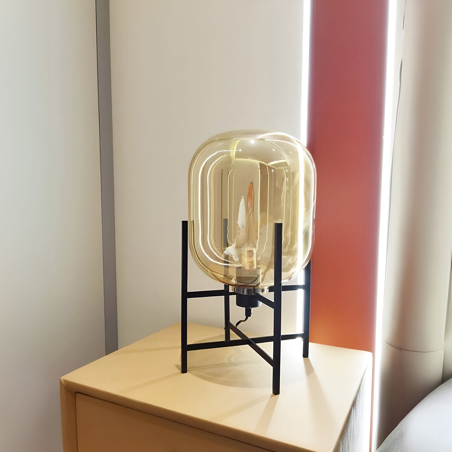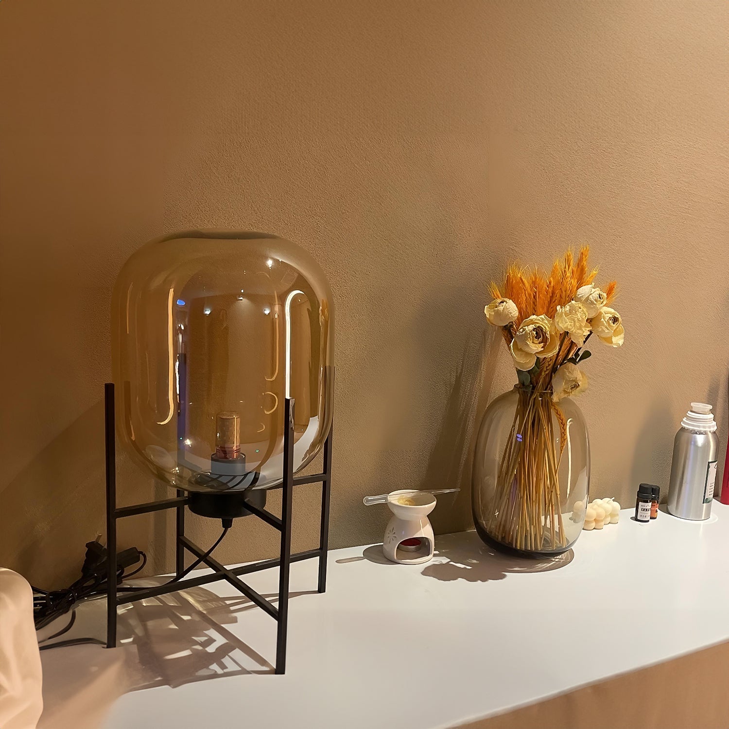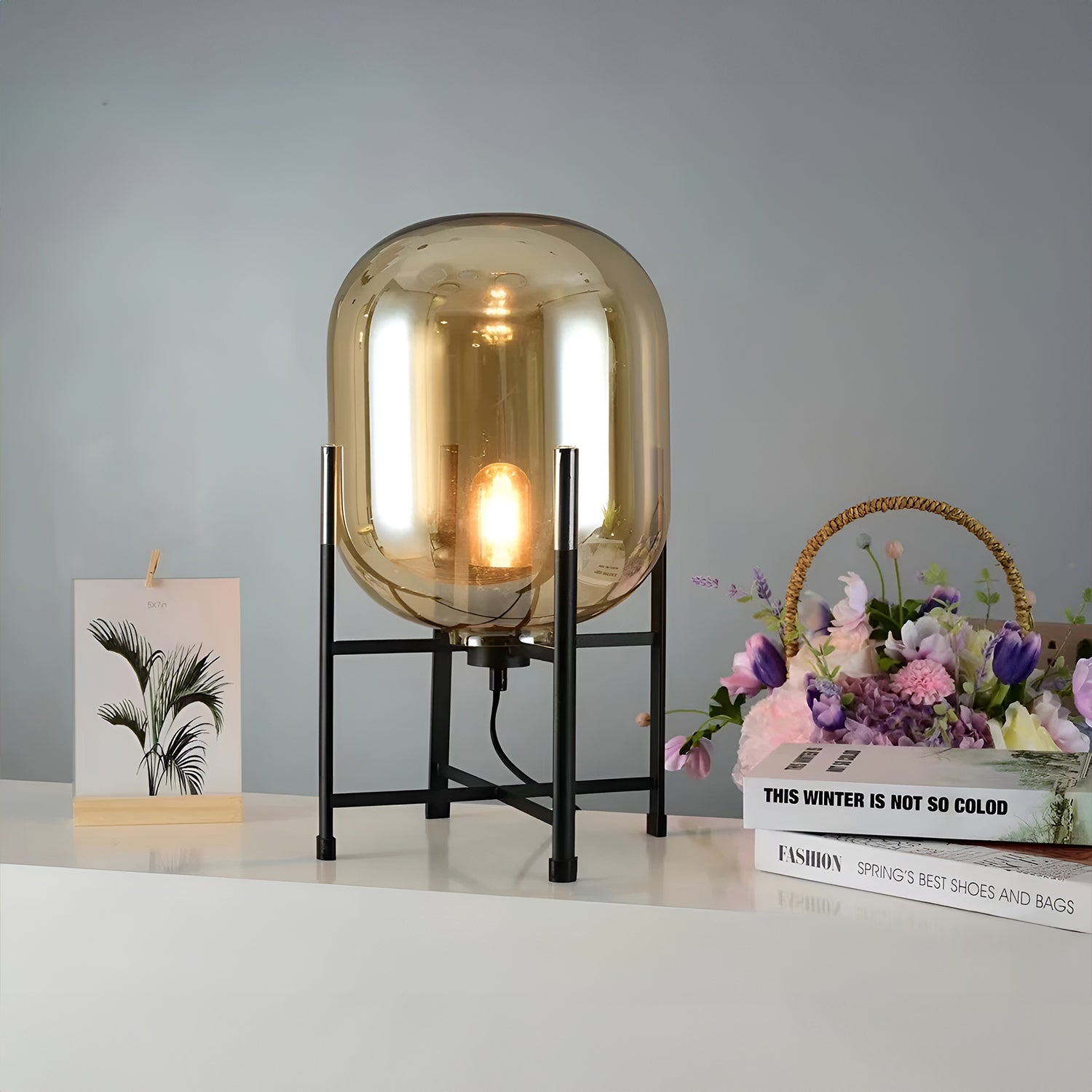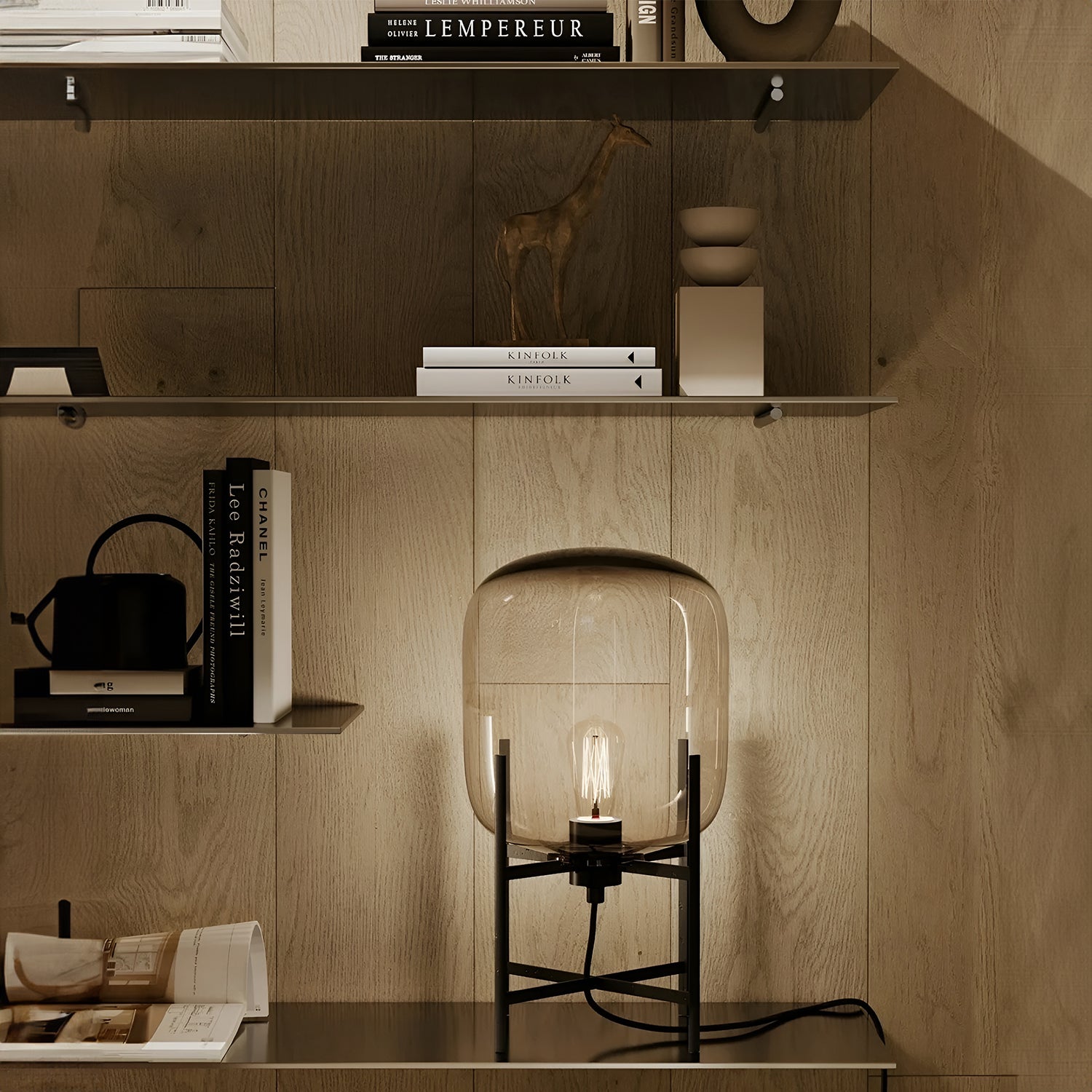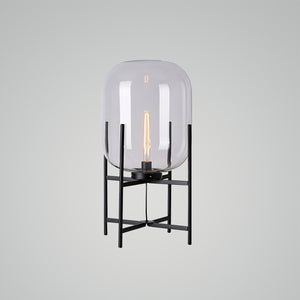 Introducing the "Oda Table Lamp," a harmonious fusion of industrial chic and contemporary design. This lamp features a bold, smoked glass dome that is both striking and subtle, set upon a minimalist matte black frame. The clear, vintage-inspired bulb at its center casts a warm, ambient glow, creating a cozy atmosphere in any room. Ideal for adding a touch of modern sophistication to your desk, bedside table, or lounge area, the "Eclipse Capsule Table Lamp" combines functionality with a unique aesthetic appeal. Its captivating design is a statement piece that not only lights up your space but also reflects your taste for the elegantly understated.