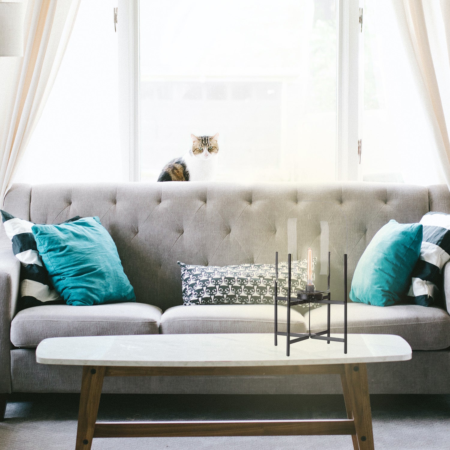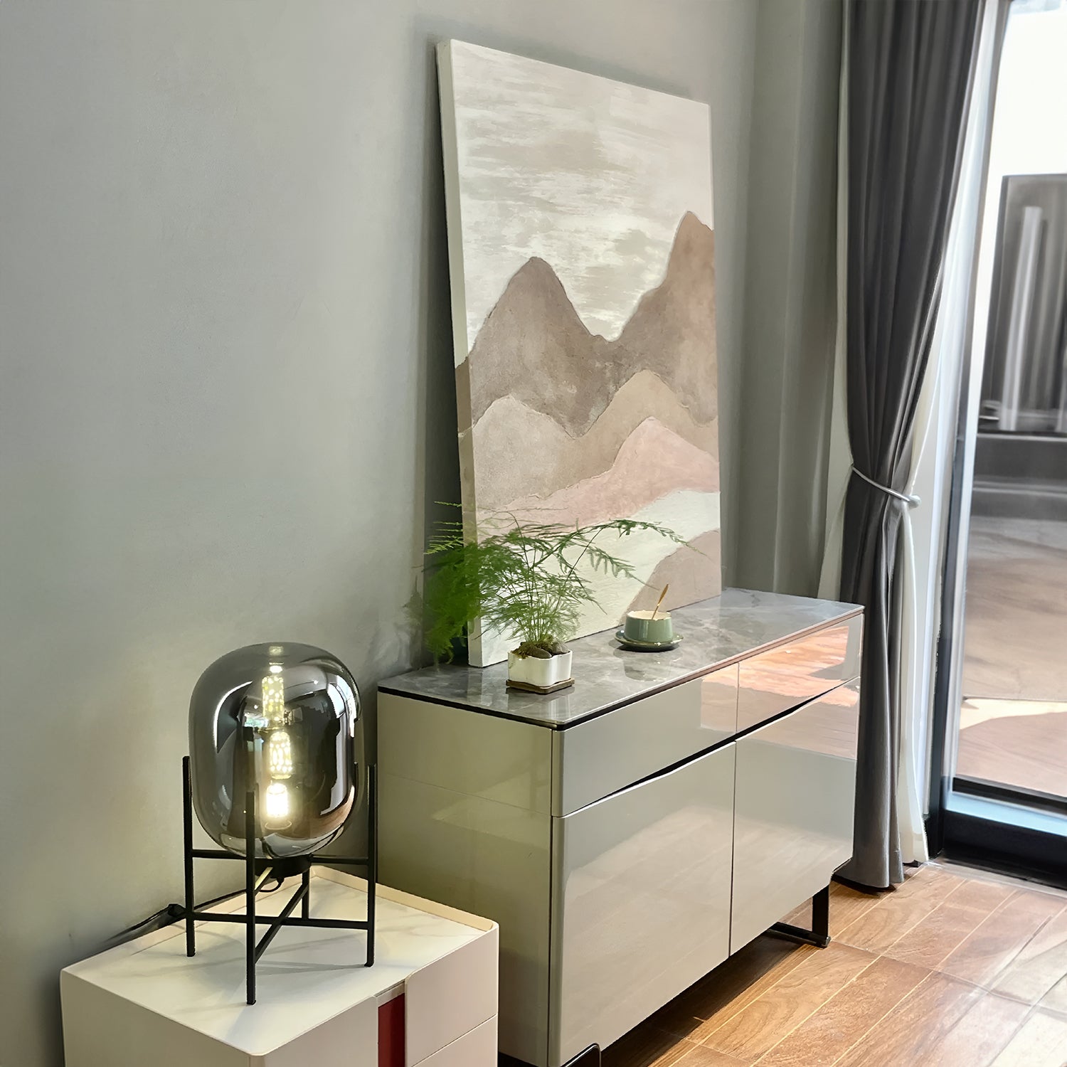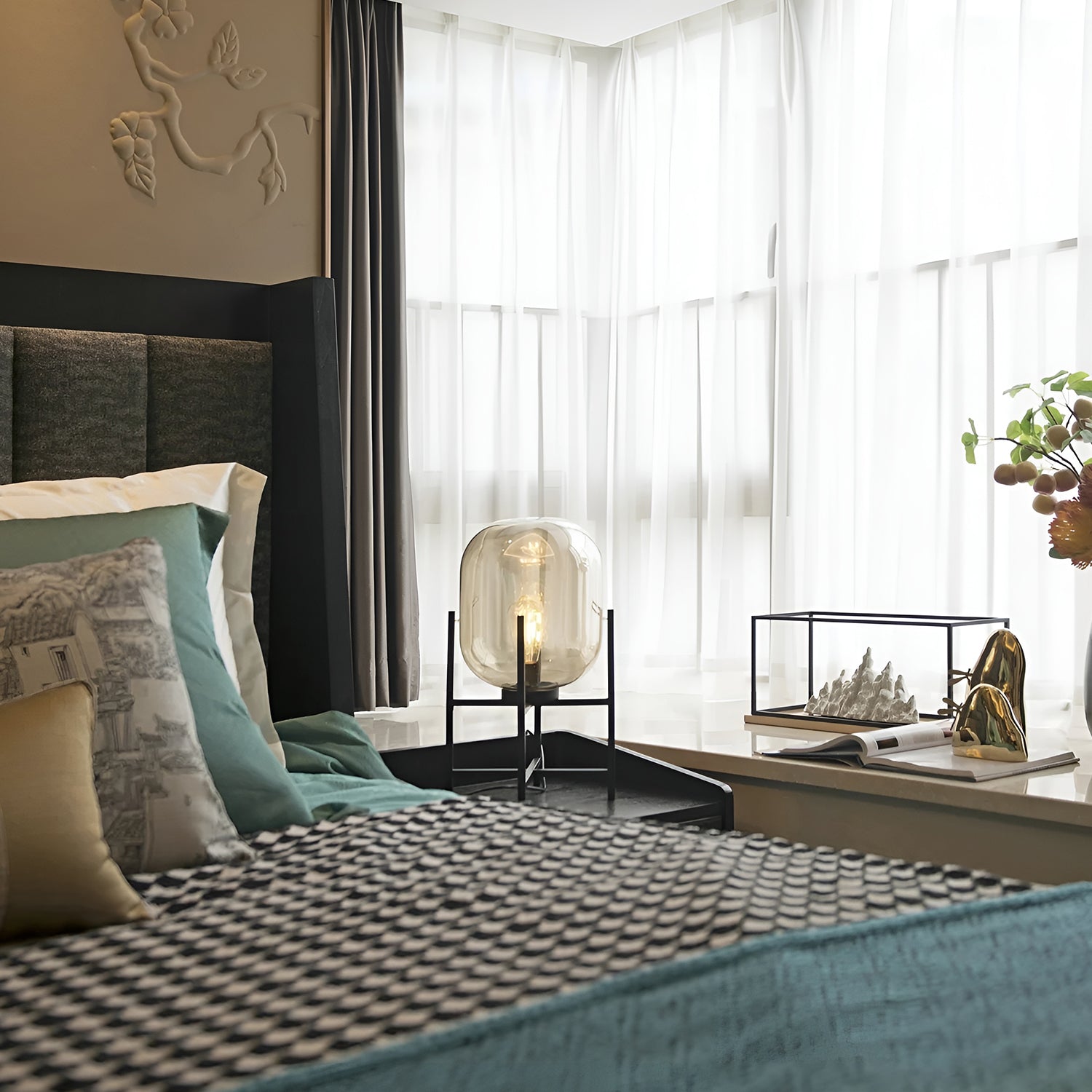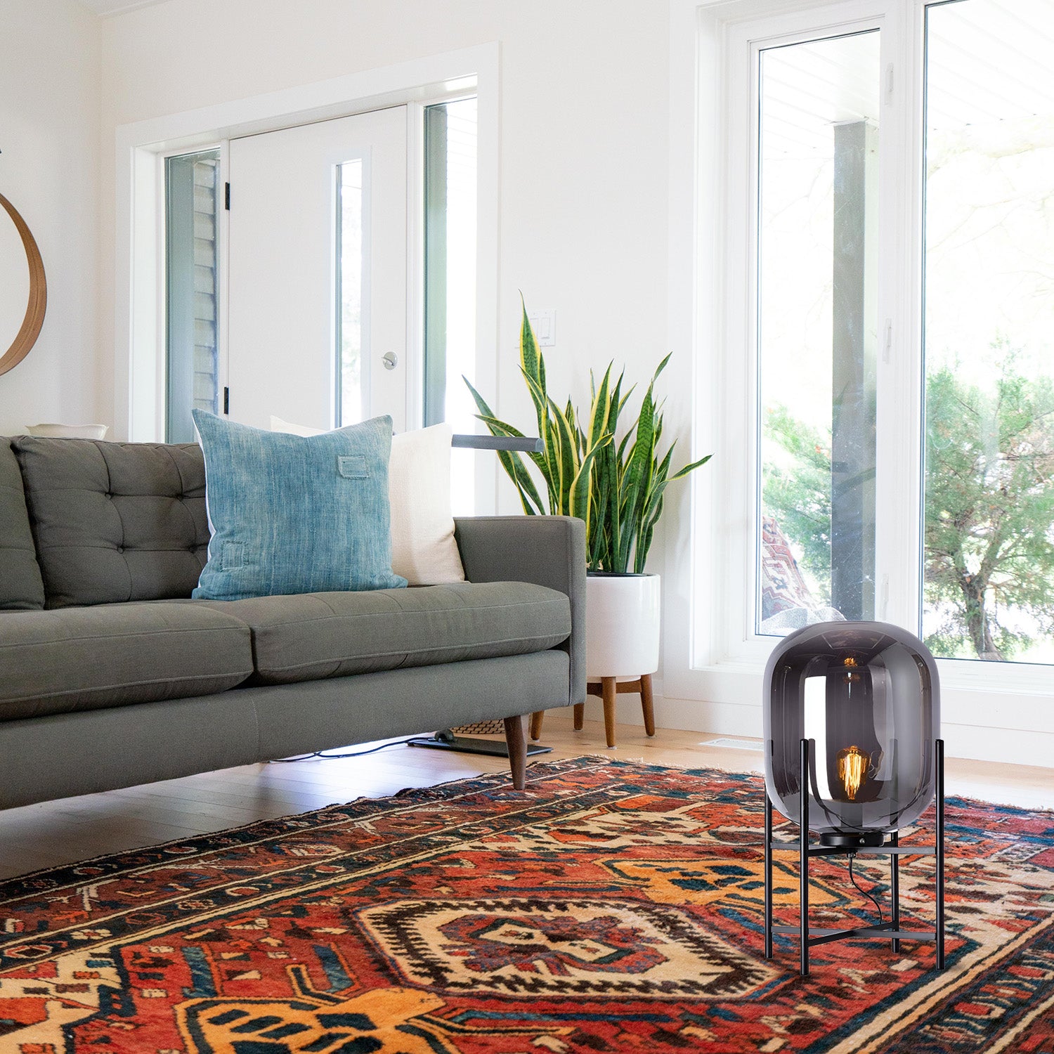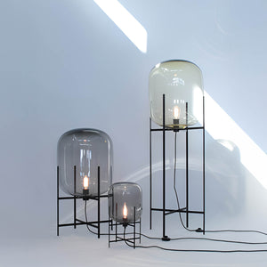 Introducing the "Oda Table Lamp," a harmonious fusion of industrial chic and contemporary design. This lamp features a bold, smoked glass dome that is both striking and subtle, set upon a minimalist matte black frame. The clear, vintage-inspired bulb at its center casts a warm, ambient glow, creating a cozy atmosphere in any room. Ideal for adding a touch of modern sophistication to your desk, bedside table, or lounge area, the "Eclipse Capsule Table Lamp" combines functionality with a unique aesthetic appeal. Its captivating design is a statement piece that not only lights up your space but also reflects your taste for the elegantly understated.
