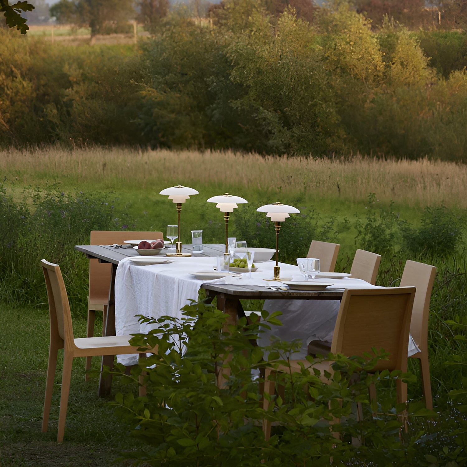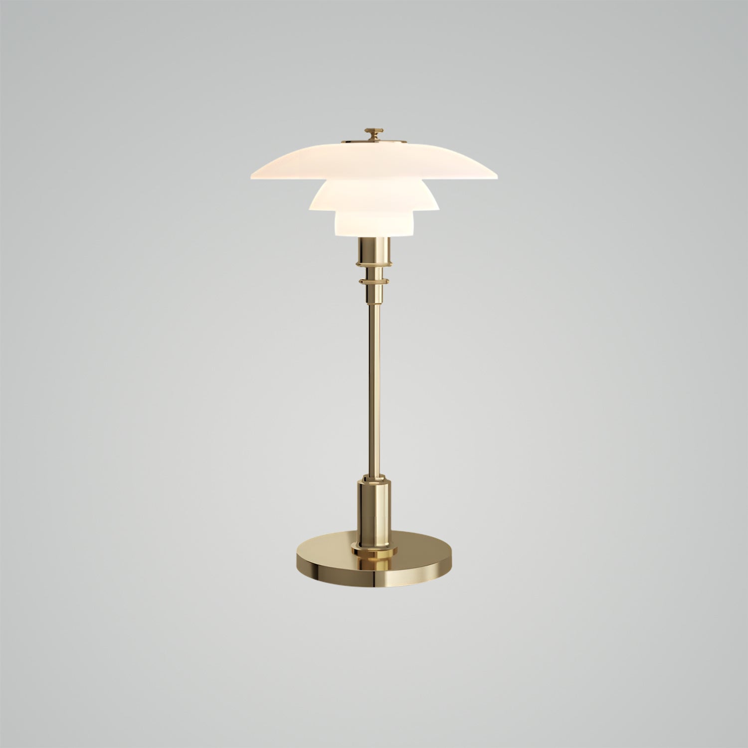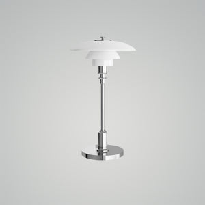 The PH 2/1 Portable is a wireless version of the classic compact table lamp, featuring hand-blown opal glass shades and a high-gloss chrome or metallic brass-plated base and stem. This portable lamp is perfect for both indoor and outdoor use, especially in areas like bookshelves or bedside tables where access to a main power source is limited.