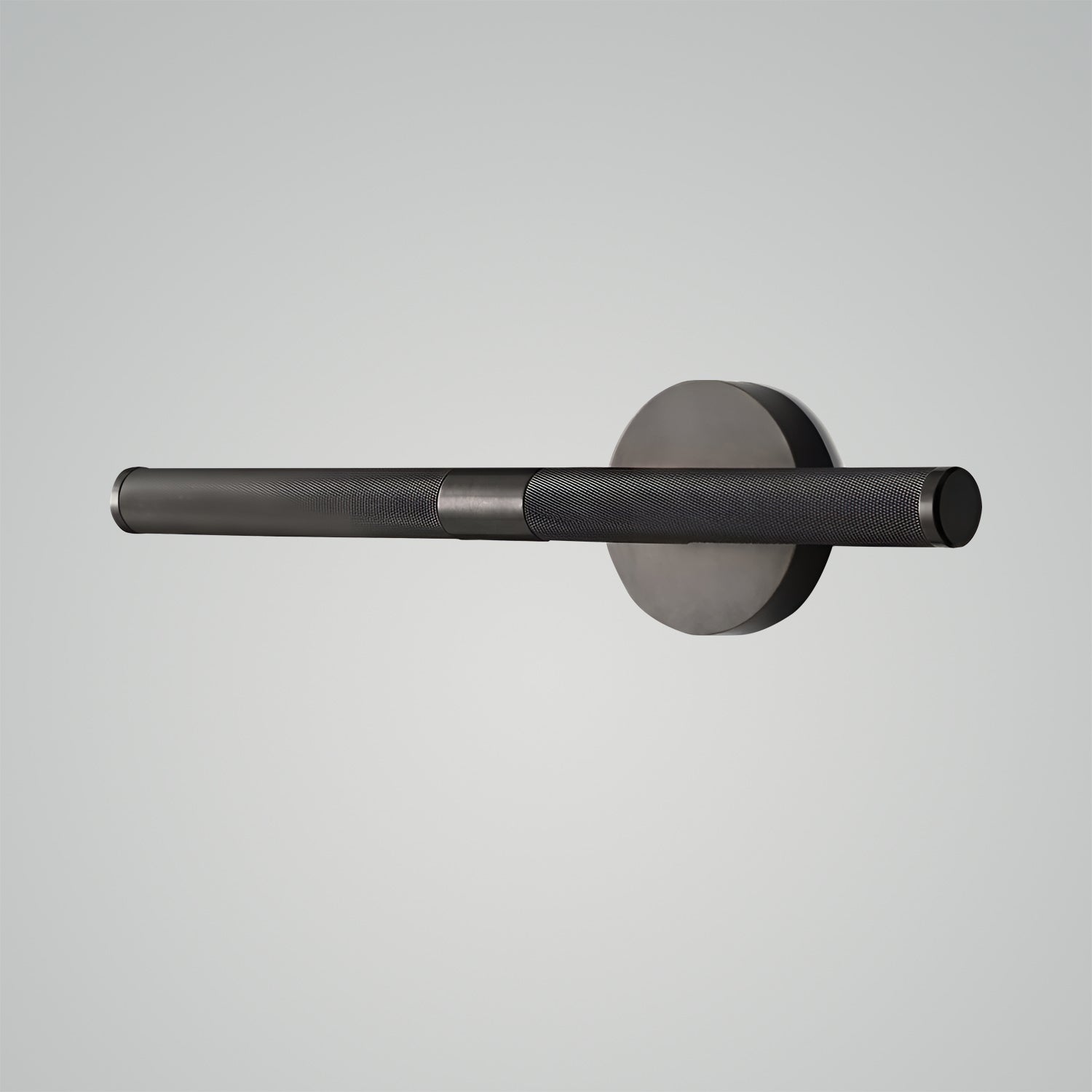Inspired by classic museum fixtures, this design reimagines the utilitarian picture light. Crafted from solid brass, the fixture combines strength with elegant proportions. The knurled texture not only meets the functional need for grip and rotation but also adds an industrial edge.