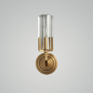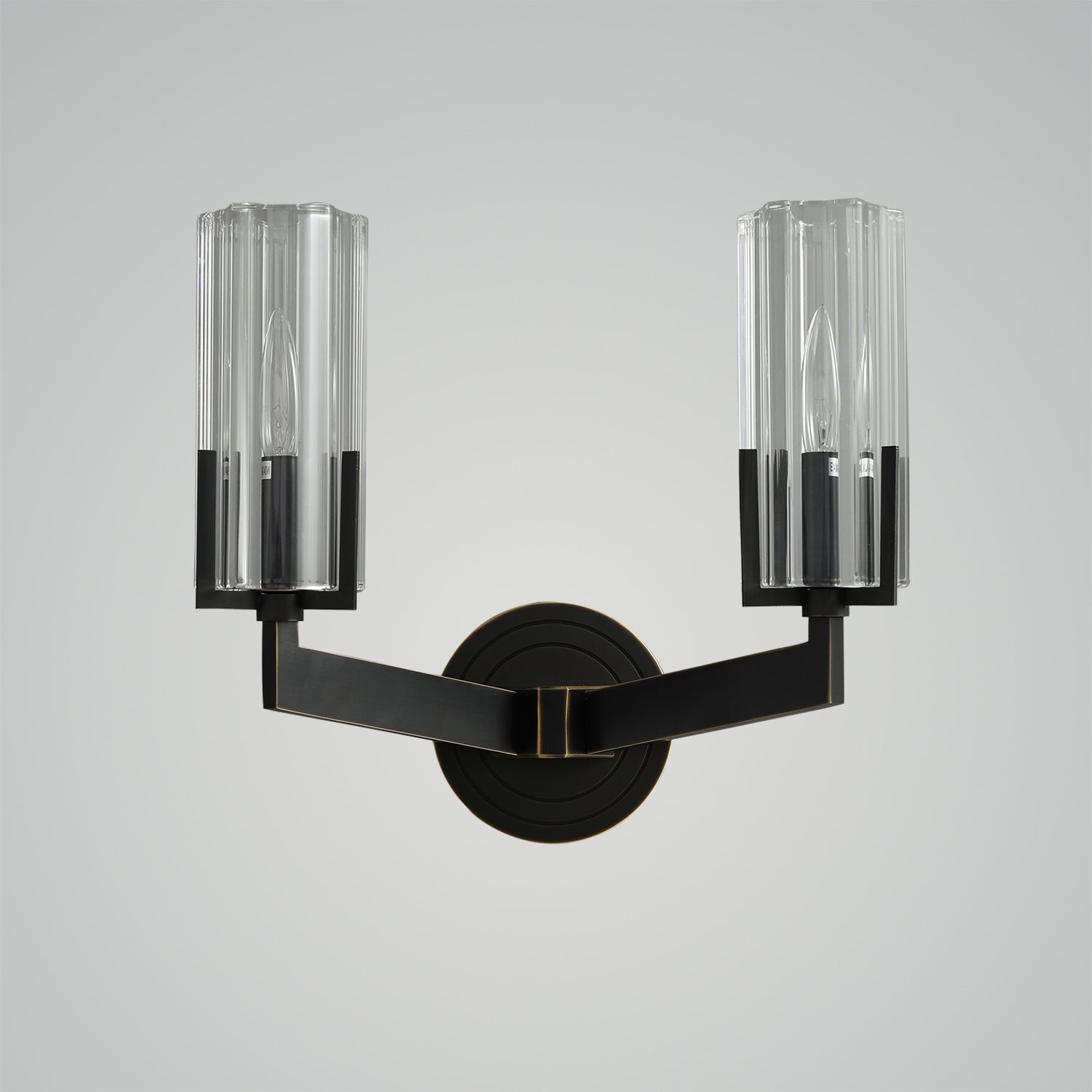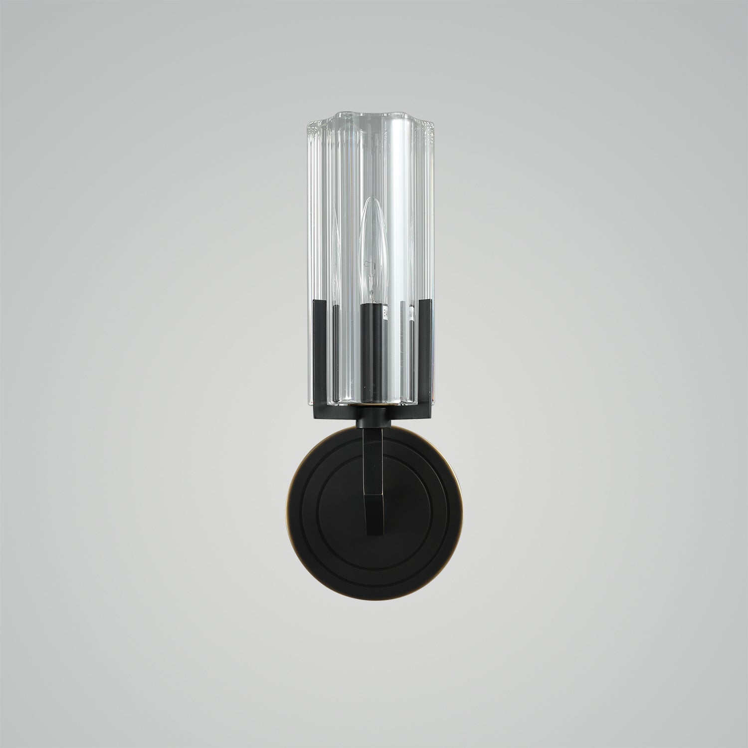 The Arcachon collection features a rhythmic design inspired by the shape and scale of industrial gears. The hexagonal spokes are interspersed with negative space, allowing them to interlock seamlessly. Crafted from crystal glass, these spokes contrast beautifully with rounded interiors and are elegantly mounted on a sleek, solid metal frame.