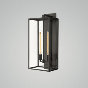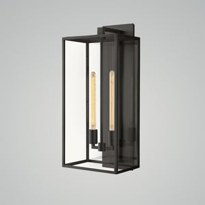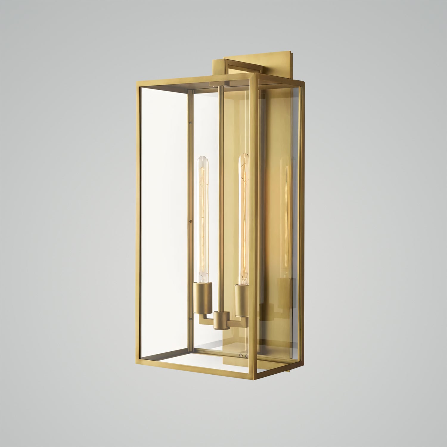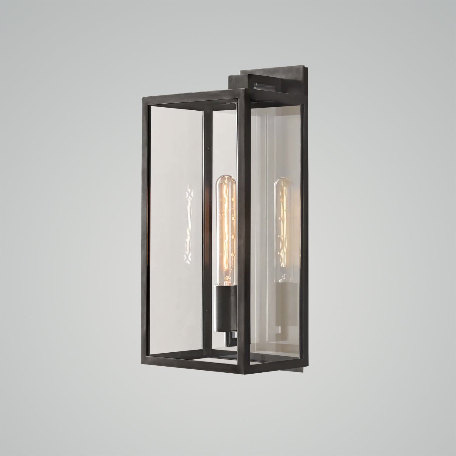 In this modern interpretation of the classic lantern, glass volumes appear to float within airy metal frames. Inspired by the glass-and-steel architecture of the International Style, the collection’s strong linear forms transcend utility with elegant proportions and a sense of weightlessness.