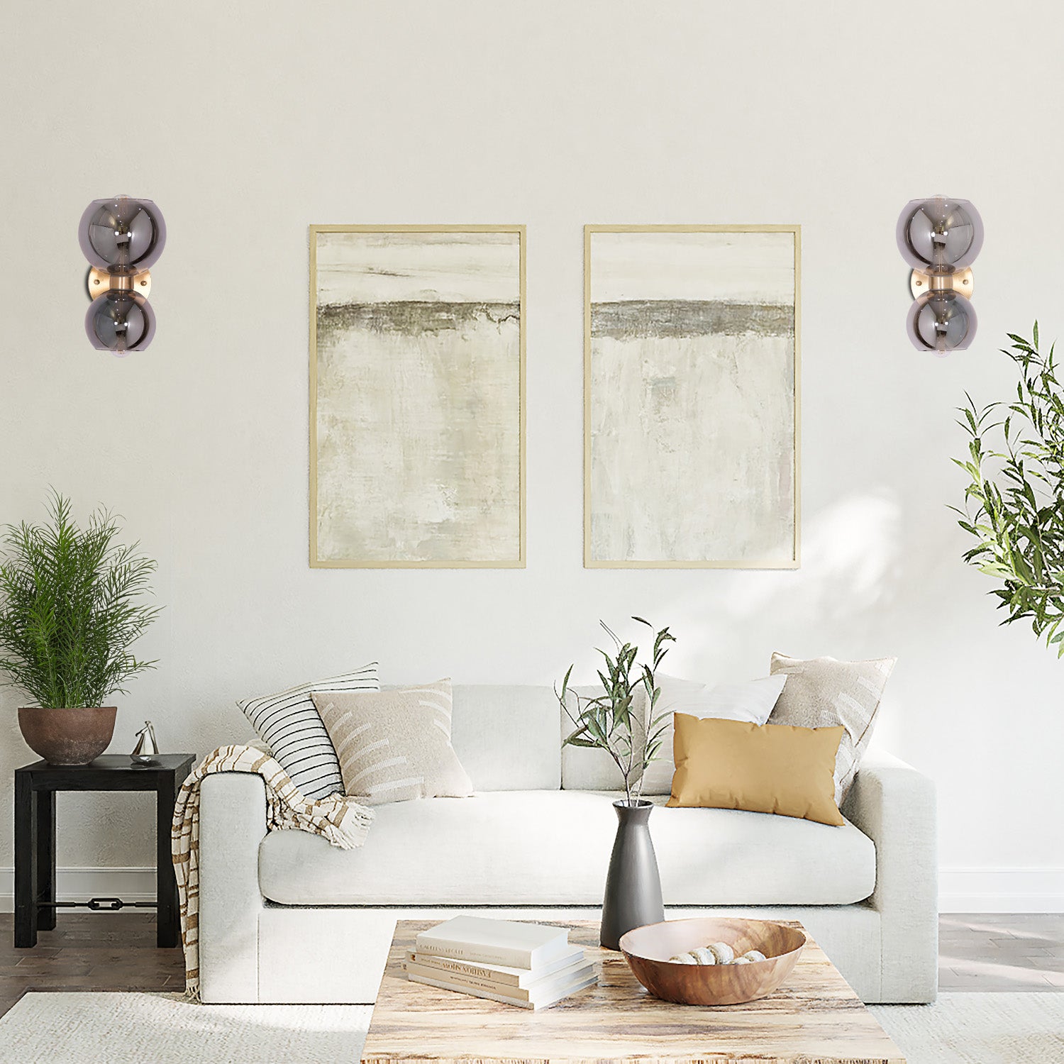 Presenting the 'Betty Wall Lamp', a contemporary lighting solution that combines simplicity with elegance. Its clean design features two frosted glass orbs that emit a soft, diffused light both upward and downward, creating a harmonious balance of illumination. Perfect for setting a relaxed mood in any room, this wall lamp's minimalistic style seamlessly integrates with any decor, from modern to traditional. Elevate your space with the subtle sophistication of the Dual Glow Sconce.