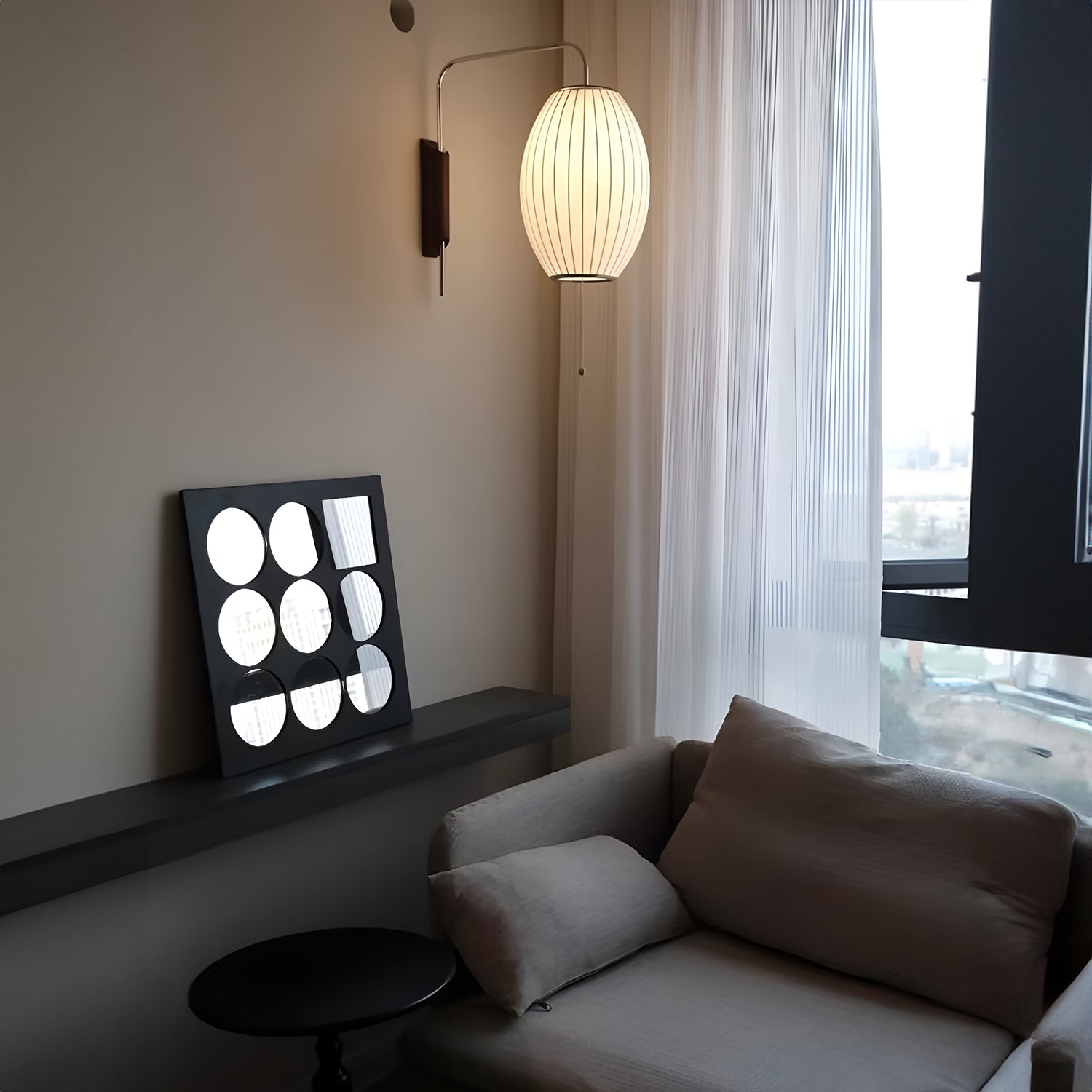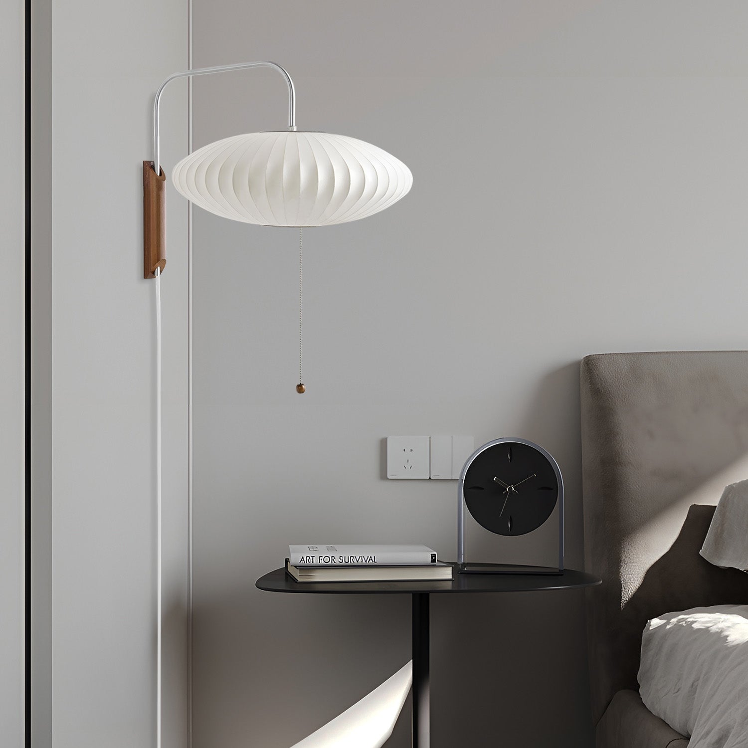 The Bubble Ball Wall Sconce is a luminous embodiment of tranquility and minimalist design. Inspired by the wabi-sabi philosophy of embracing the imperfect, this sconce features a gently ribbed silk shade that diffuses light to create a soft, serene glow. The elegant curvature of the metal arm, coupled with the warmth of the wooden accent, adds a natural, organic touch to your space. Ideal for creating a peaceful corner for reflection or adding a subtle ambiance to your bedroom, the Bubble Ball Wall Sconce transforms any wall into a haven of calm and relaxation.