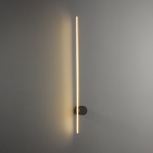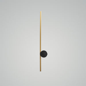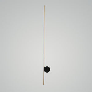This wall-mounted diffuse lighting device includes a horizontal bar (model Wall 1). Each bar is composed of the following: an extruded and processed copper body, anodized in copper and black; a platinum optical silicone diffuser; and an integrated LED strip (CRI 90).