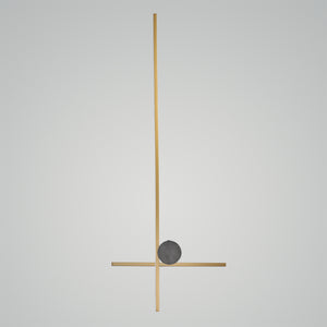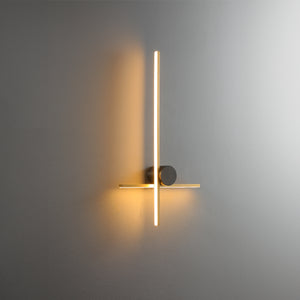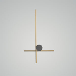 This wall-mounted diffuse lighting device includes vertical and horizontal bars (model W2). Each bar is composed of the following: an extruded and processed copper body, anodized in copper and black; a platinum optical silicone diffuser; and an integrated LED strip (CRI 90).