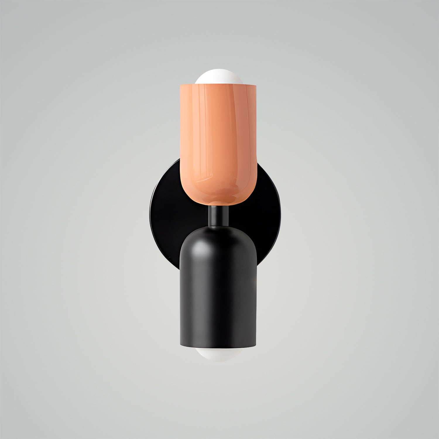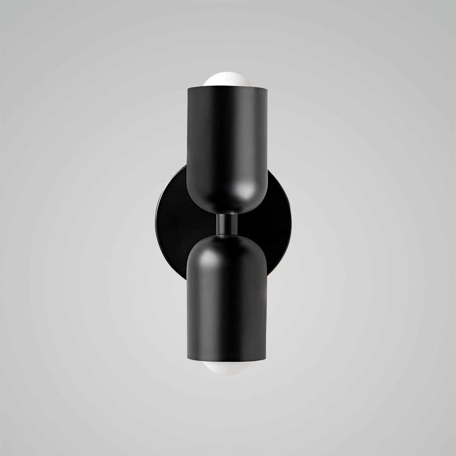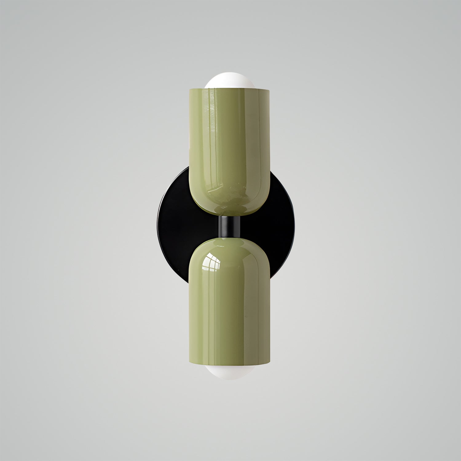 The Couleur Double-Head Wall Lamp is an artistic expression of balance and beauty. This unique fixture features dual cylindrical shades, one resting atop the other, creating an intriguing play of light and form. The contrasting colors, a soothing olive and a soft cream, are set against a bold black backdrop, making this sconce a striking visual statement. This piece is perfect for adding a touch of sophistication and modern design to your walls, with a warm, inviting light that is ideal for hallways, bedrooms, or living spaces. The Bi-Form Shadows Wall Sconce is a testament to contemporary style, offering an elegant yet functional element to your decor.