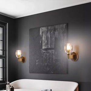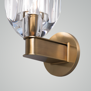Step into a world of radiant elegance with the Diamond Crystal Sconce. This stunning piece is a masterpiece of light and geometry, featuring a crystal-like shade that catches and reflects light in dazzling patterns. The warm antique brass finish of the base adds a touch of vintage charm, while the modern LED technology ensures energy efficiency. Perfect for gracing the walls of a sophisticated hallway or adding a sparkling accent to a living space, the Lustrous Facet LED Wall Sconce merges the best of timeless design and contemporary lighting innovation. Illuminate your home with this jewel of light and enjoy the perfect ambiance it creates.