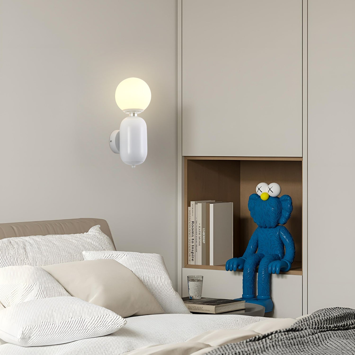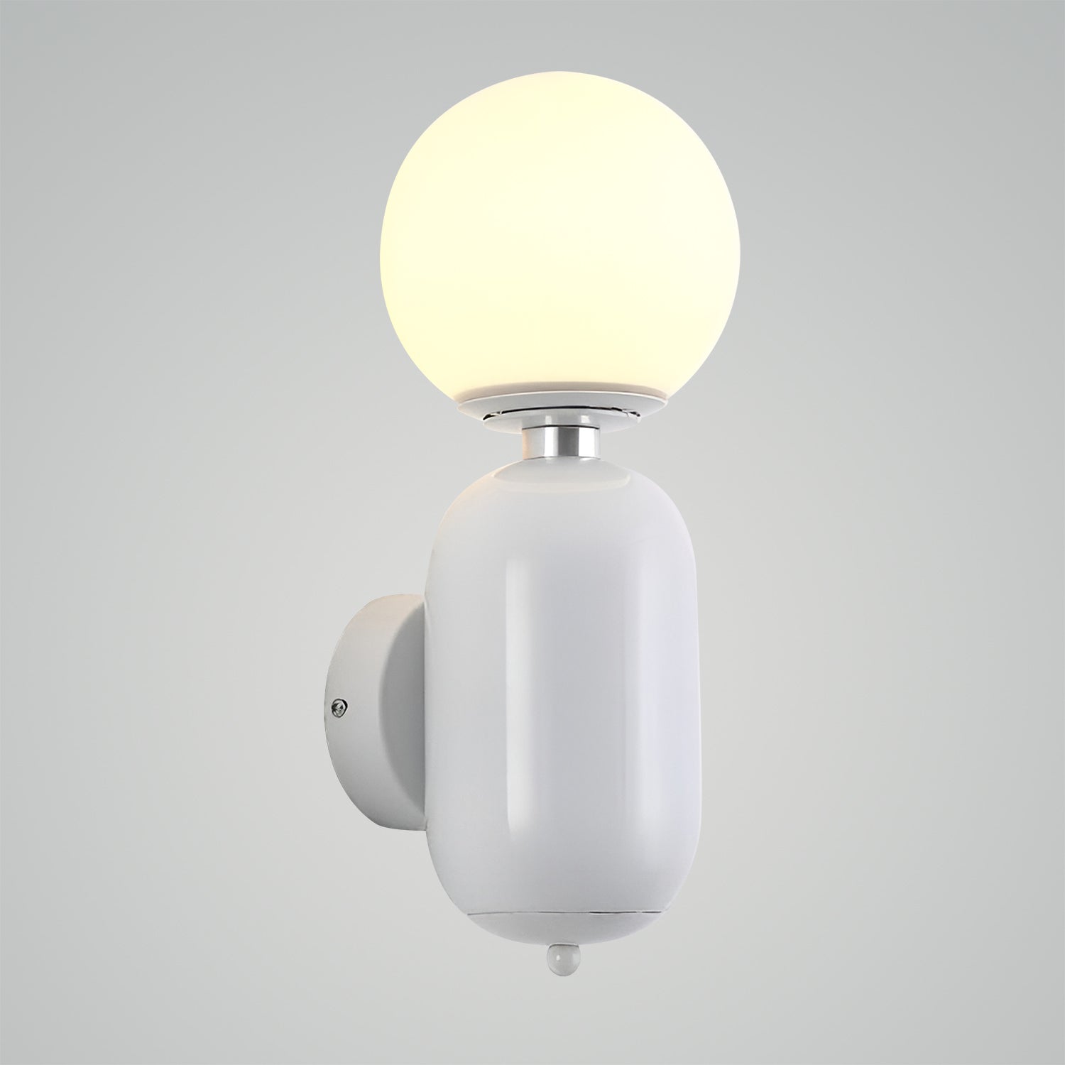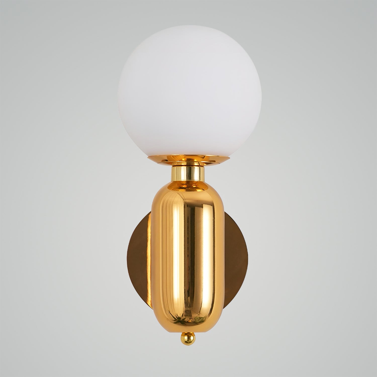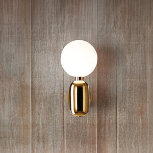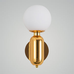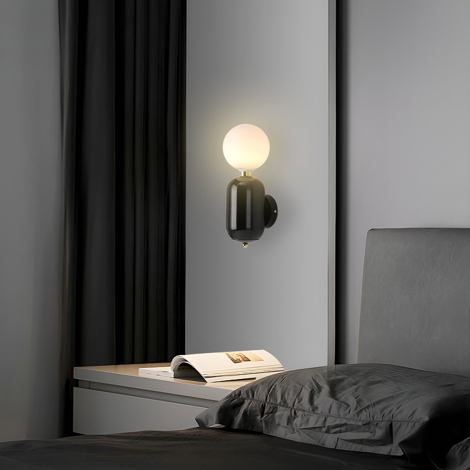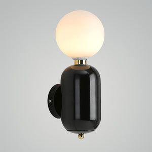 Illuminate your space with the chic simplicity of the 'Kade Wall Light'. This elegant fixture features a matte black capsule-like base that supports a frosted glass globe, producing a soft and ambient light that can warm any room. The contrast of the opaque, cylindrical base with the translucent, spherical top creates a modern and minimalist design that complements a variety of interior styles. Ideal for creating a cozy atmosphere in bedrooms, hallways, or living areas, this sconce is a versatile addition to your home, blending seamlessly with both bold and understated decor.