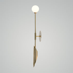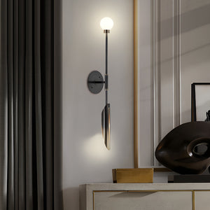 Discover the sleek sophistication of the Luminous Elegance Vertical Sconce, a contemporary lighting solution that adds a touch of modern charm to any space. With its elongated, golden-hued tube design and radiant opal globe, this wall sconce exudes a warm, ambient glow perfect for creating an inviting atmosphere. Crafted for discerning tastes, it brings both functionality and artistry to your decor. Whether you're looking to enhance a hallway, living room, or bedroom, this sconce's minimalist elegance is sure to complement your interior with its understated yet luxurious appeal. Light up your world with this exquisite blend of style and illumination.