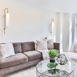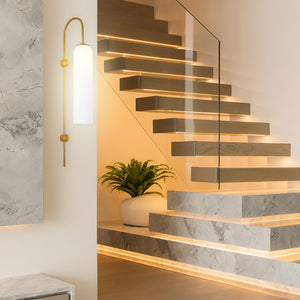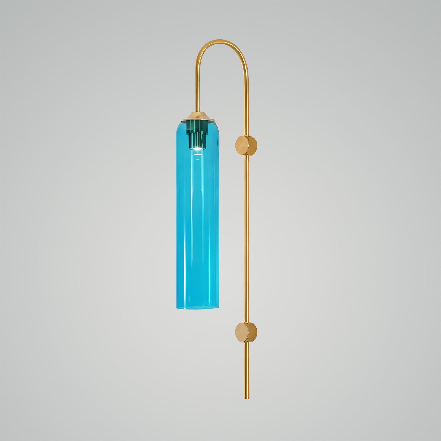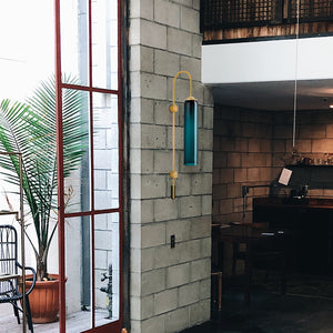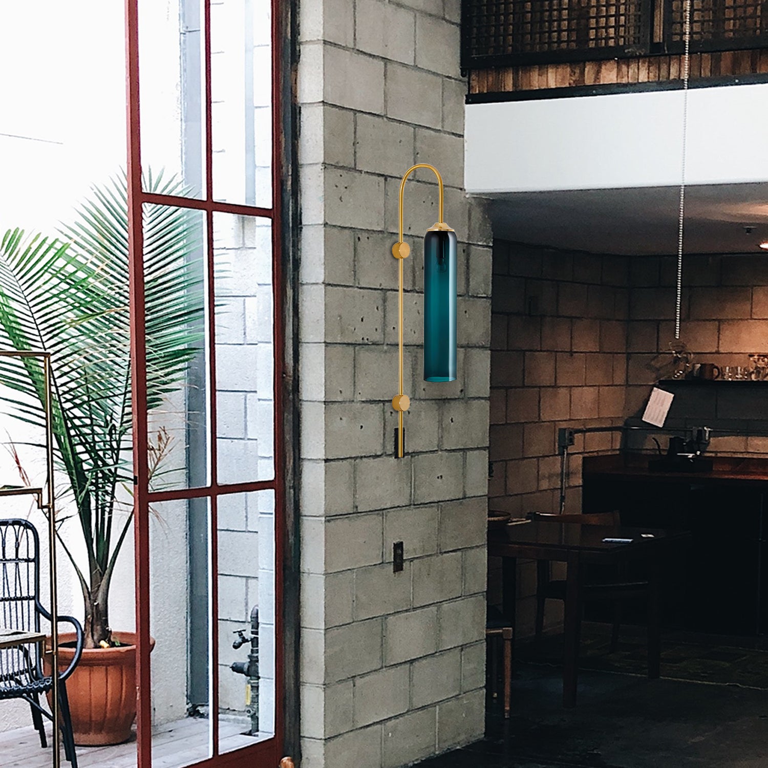 Discover the ethereal glow of the "Modern Glass Wall Lamp", a contemporary marvel that blends the artistry of glasswork with the sleekness of modern design. This wall lamp features a cylindrical glass shade with a gradient of oceanic blues, offering a calming presence reminiscent of the sea's depth and serenity. Cradled by a minimalist brass fixture, its elegant form is both a source of illumination and a piece of art for your living space. Illuminate your corridors, accentuate your living room, or add a touch of sophistication to your bedroom with this exquisite lighting fixture. The "Aqua Essence Sconce" isn't just a lamp; it's a statement piece that brings a tranquil yet modern ambiance to any room.