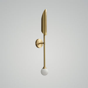 Voyager is an up-down wall sconce that provides directional light. Angular cuts in the shade allow light to escape from within, bouncing against the wall from the back while revealing a glowing line through the front.