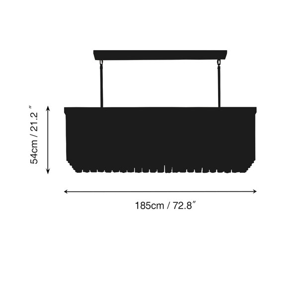 Chandelier Body:  137cm W x 49cm D x 54cm H / 185cm W x 49cm D x 54cm H