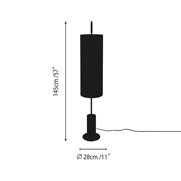 The cotton lampshade, metal structure, and stitched leather handle of this lamp complement each other, showcasing the charm of industrial craftsmanship. It has a strong presence and is an impressive light that evokes the classic Doric column.