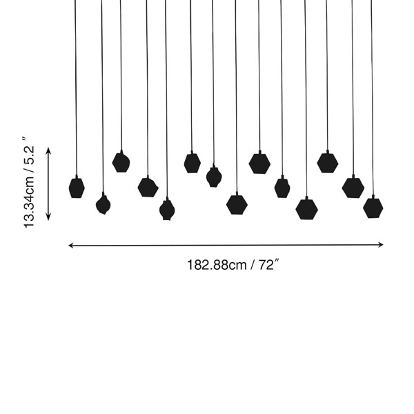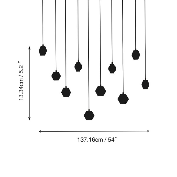 Chandelier Body:  5"W x 3½"D / 54"W x 10"D x 5¼"H / 72"W x 10"D x 5¼"H