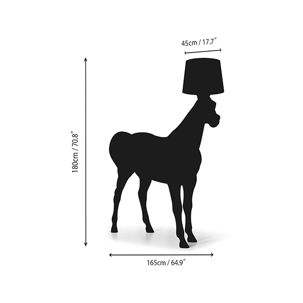Matching the size of a real horse, this lamp exudes a magical, natural charm and playful spirit. Its ability to make a striking impression is so refined that offering it a simple carrot feels inadequate. Instead, it truly deserves to be placed in the spotlight.