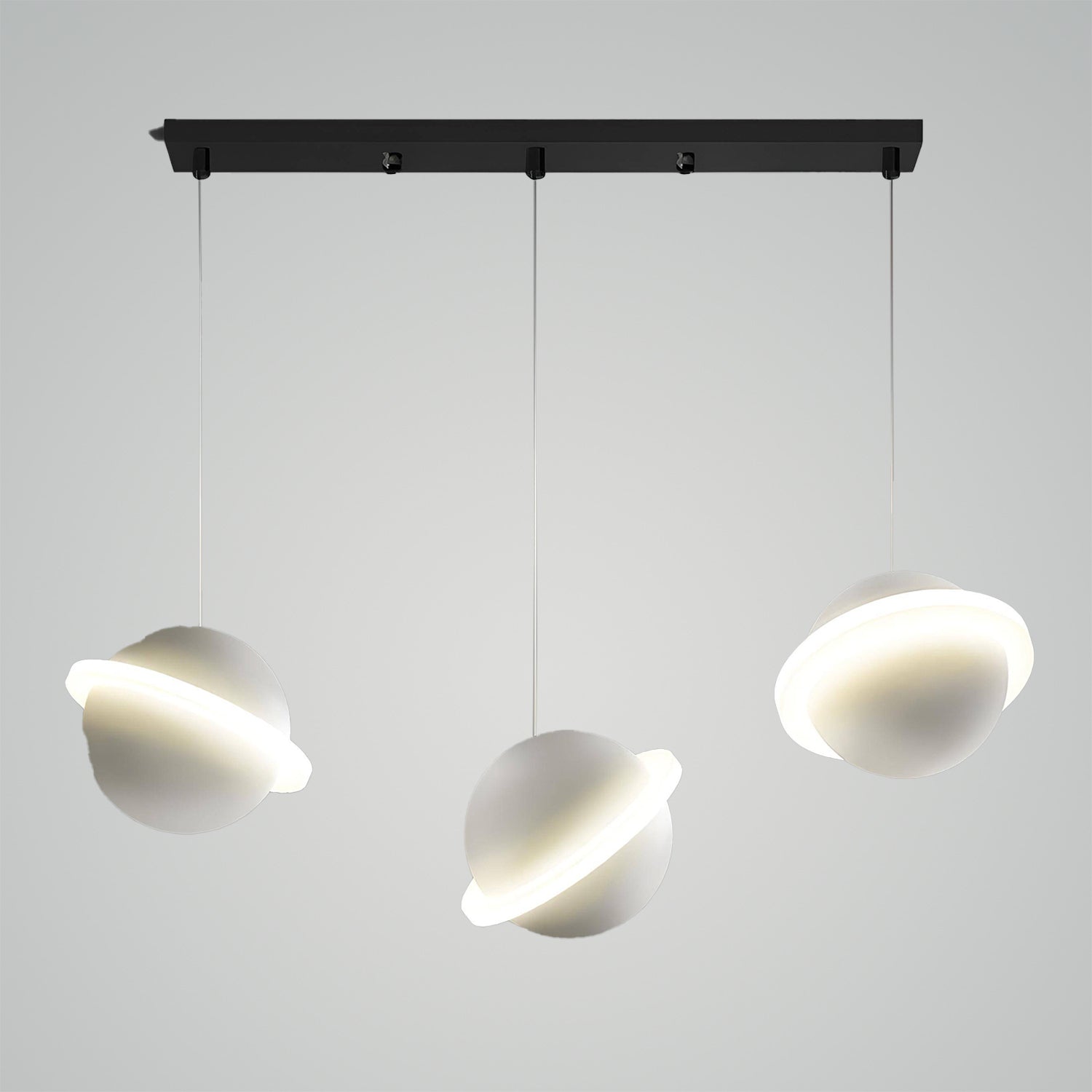 Elevate your living space with the exquisite design of our Jupiter Ring Pendant Light. Inspired by the majestic dance of planets, this lighting feature offers a harmonious blend of form and function. Graceful curves and a minimalist aesthetic combine to cast a warm, inviting glow, transforming any room into a serene retreat. Illuminate your world with this piece's soft luminescence and enjoy the perfect ambiance for relaxation or entertaining. Discover the beauty of simplicity and modern elegance with this striking addition to your home decor.