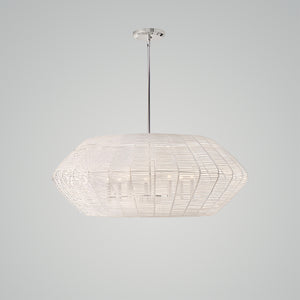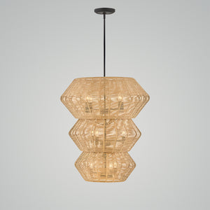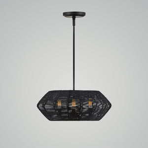 Luca's seaside atmosphere exudes a touch of exotic charm. This bold pendant light features a sturdy woven drum shade and comes with a complete finished light string, providing ample practical lighting and a variety of finish options.