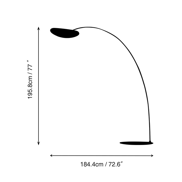 This floor lamp evokes the appearance of a glowing cloud, suspended from the end of a gently curved pole featuring flowing, natural lines for a visually pleasing effect. The integrated light source emits a soft, diffused illumination.