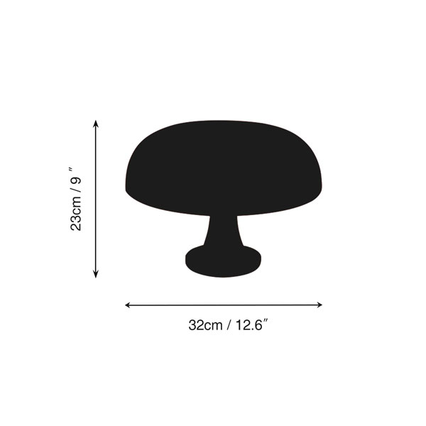 This smaller version of a classic 1960s lamp features a distinctive mushroom shape and is available in vibrant orange or white. It has become an iconic design piece. Originally introduced in 1967 as part of a reissued "Modern Classics" collection, the lamp is made using ABS thermoplastic injection molding, combining industrial materials and techniques for use in both home and office environments.