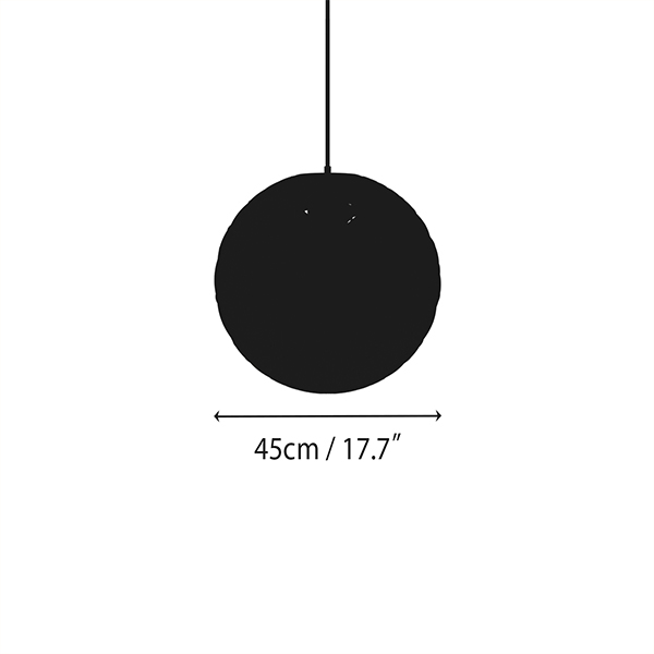 This spherical pendant light produces a glare-free illumination, thanks to the small diamond-shaped elements that compose its structure. Designed to prevent glare when viewed at angles above 45 degrees, the fixture casts light both upward and downward, brightening the ceiling and enhancing the surrounding atmosphere. Each individual element gently shapes the light, creating a smooth balance between direct and reflected illumination, which accentuates the pendant’s unique radiance.