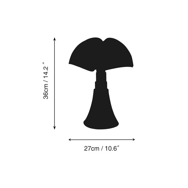 This lamp functions as both a table and floor light, offering adjustable height and diffused illumination. It features a glazed stainless steel telescopic rod, a white opal methacrylate lampshade, and a base and knob crafted from lacquered aluminum. The lamp comes equipped with LED bulbs.