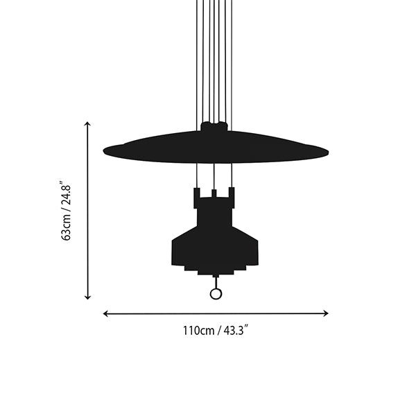 Designed in 1957 and honored with an award at the ADI Compasso d'Oro, the Saliscendi is an adjustable pendant lamp with dual emission capabilities, allowing for the simple gesture-based adjustment of direct and indirect light. The light source and reflector slide along the cable in opposite directions, providing dynamic and customizable lighting. Originally created for the Milan Chamber of Commerce, the Saliscendi has now been redesigned with a dimmable LED light source, retaining the brilliance of the original design.