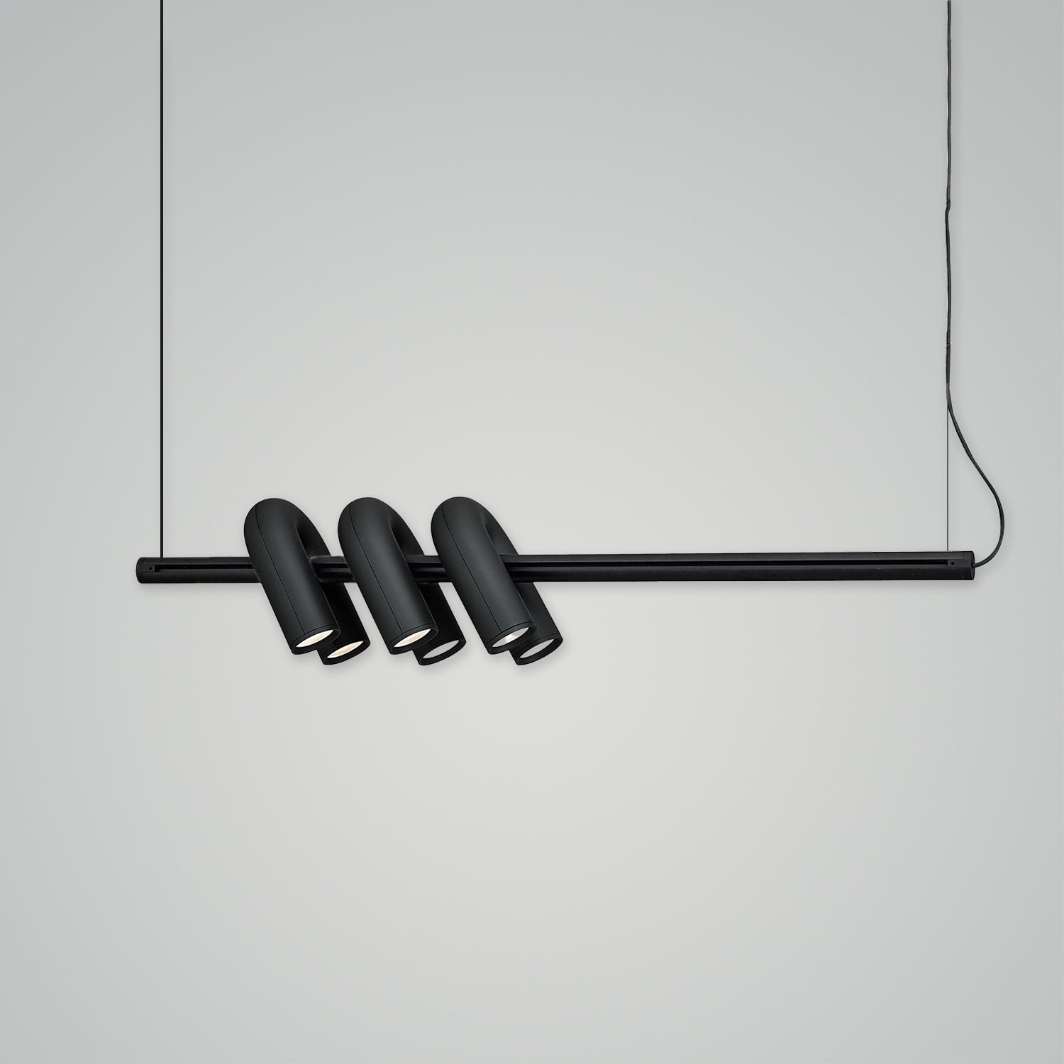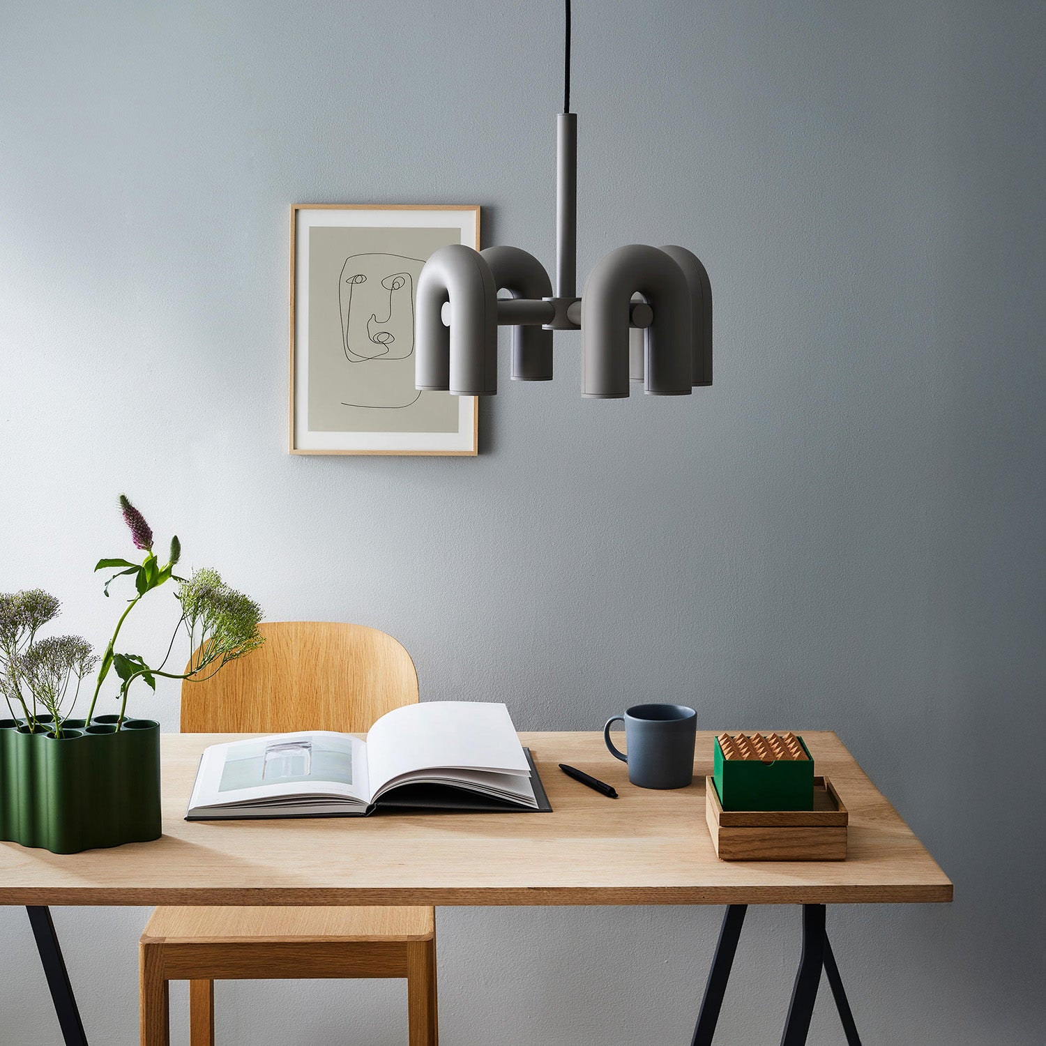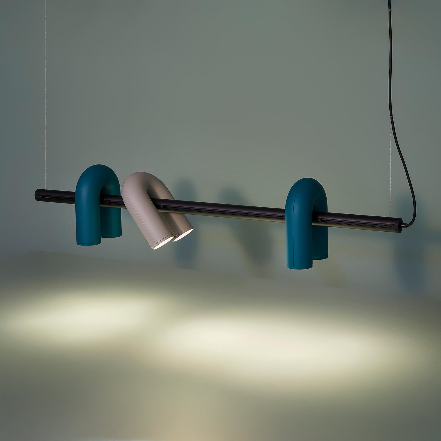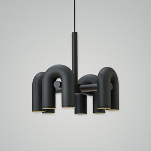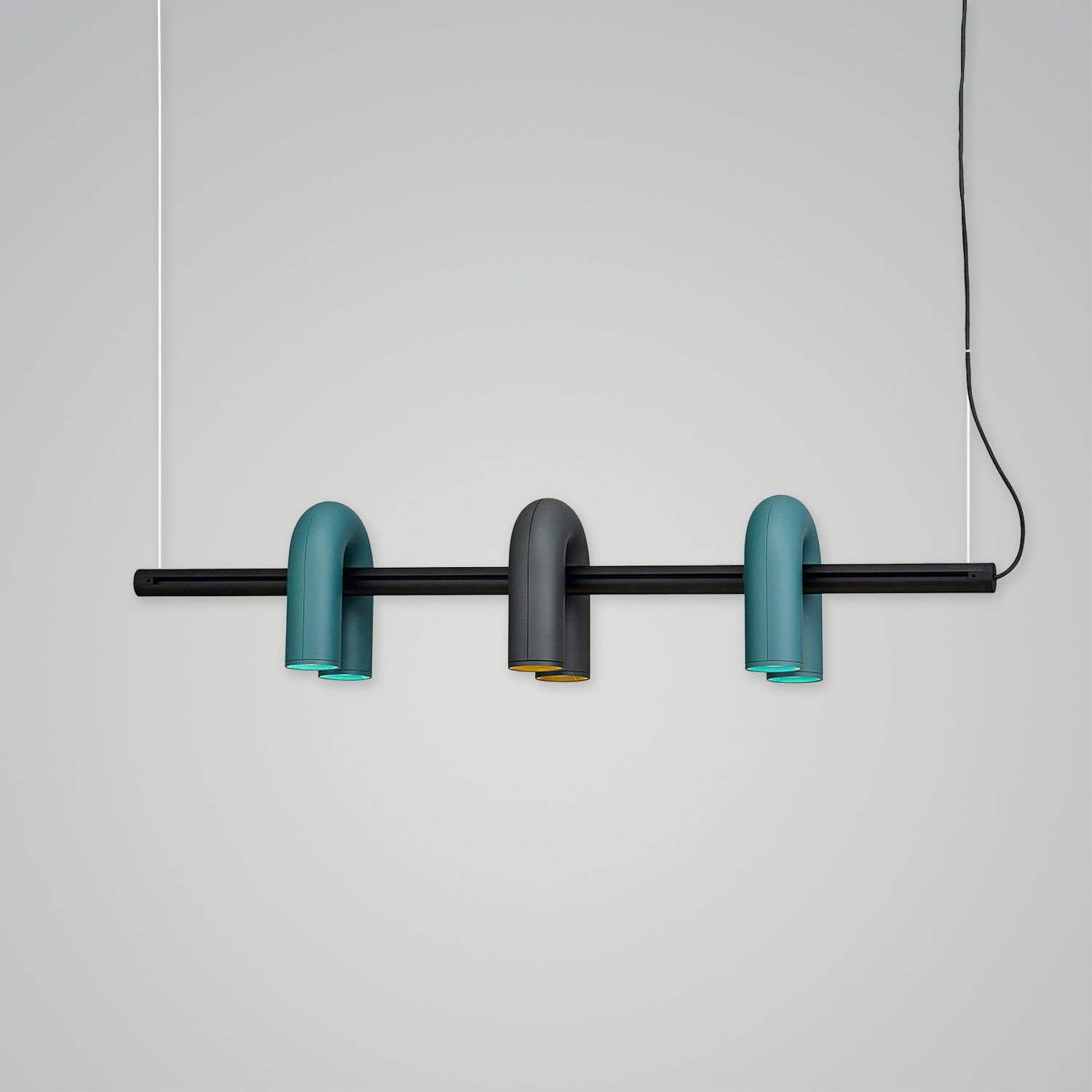 This lighting collection was designed with a focus on minimalism and geometric aesthetics. The series includes pendant lamps (available in two sizes), wall lamps, and track lights. Each model features U-shaped modules that can be moved and directed in various directions. Available in four colors—charcoal gray, gray, green, and terracotta—the lamps combine elegant curves and beautiful tones, offering timeless appeal and versatility.